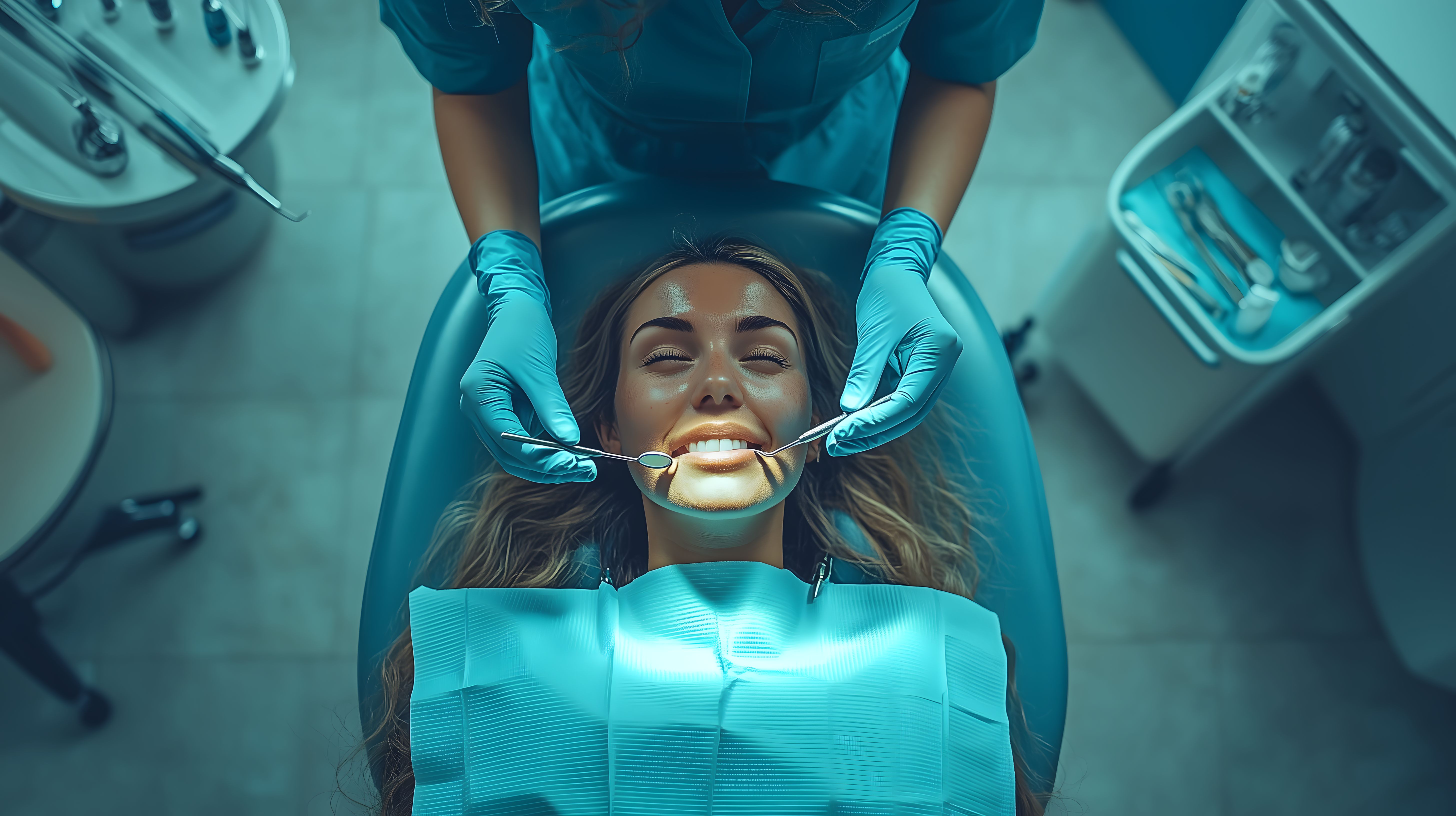Das Bild zeigt eine Patientin, die lächelnd auf einem Zahnarztstuhl liegt, während eine medizinische Fachkraft in blauer Schutzkleidung ihre Zähne untersucht. Das Foto vermittelt einen ruhigen, professionellen Eindruck einer Routinebehandlung im Gesundheitswesen. Es eignet sich hervorragend für den Einsatz in medizinischen oder gesundheitsorientierten Kontexten wie Blogbeiträgen, Newslettern oder Werbekampagnen. Das hochauflösende und kostenlose Stockfoto steht unter einer Creative-Commons-Lizenz zur Verfügung.