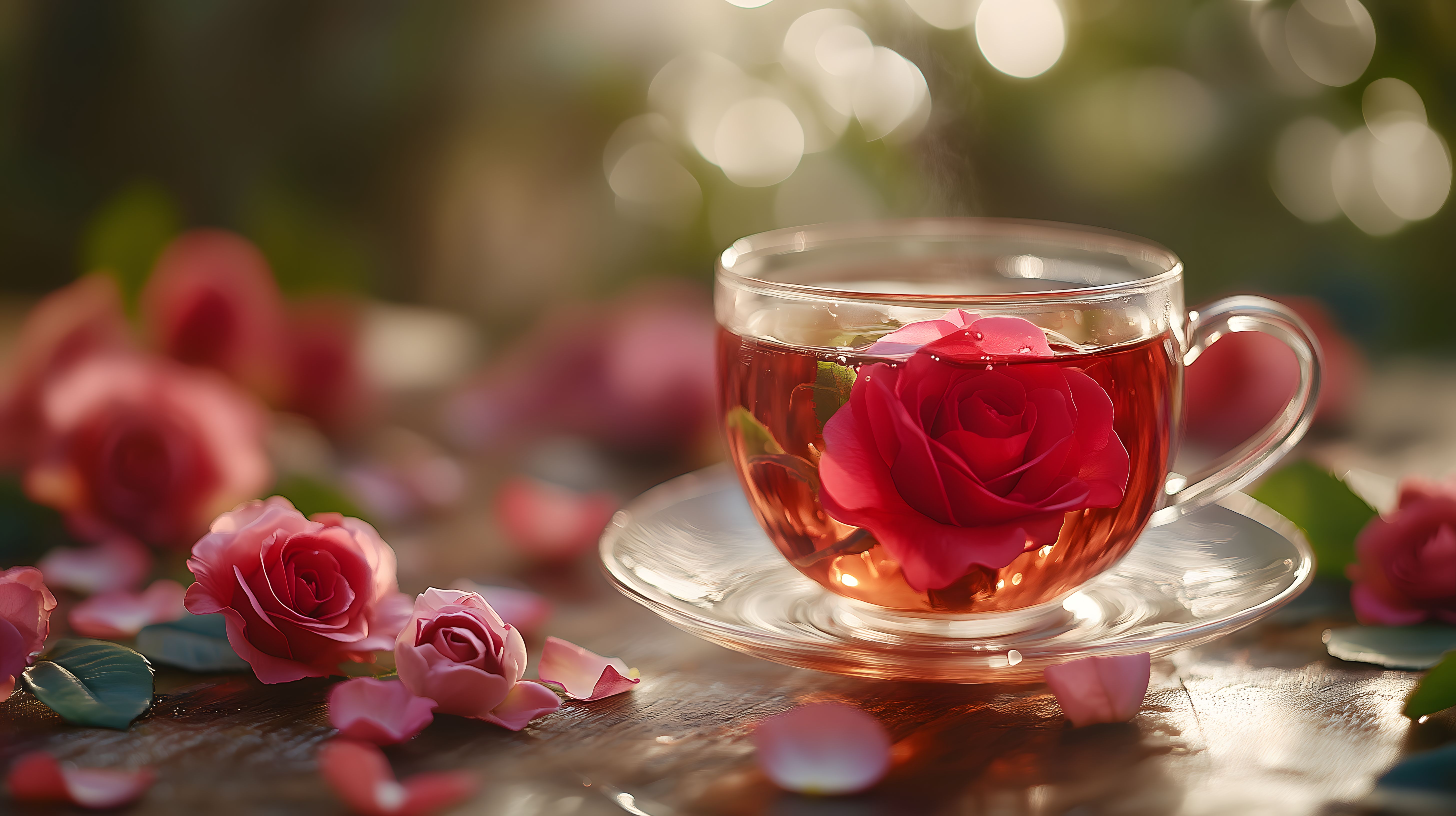 Dieses Foto zeigt einen Rosenbluetentee in einer Glasschale, umgeben von zarten, roten Rosenblüten. Die weichen Farben und die verschwommene Hintergrundatmosphäre schaffen eine romantische und entspannte Stimmung. Das Bild wäre ideal für die Verwendung in Blogs, Newslettern, Social-Media-Beiträgen oder Werbekampagnen rund um Themen wie Entspannung, Genuss und Naturerlebnis. Als kostenloses Stockfoto in hoher Auflösung und unter Creative-Commons-Lizenz eignet es sich hervorragend für vielfältige Projekte.