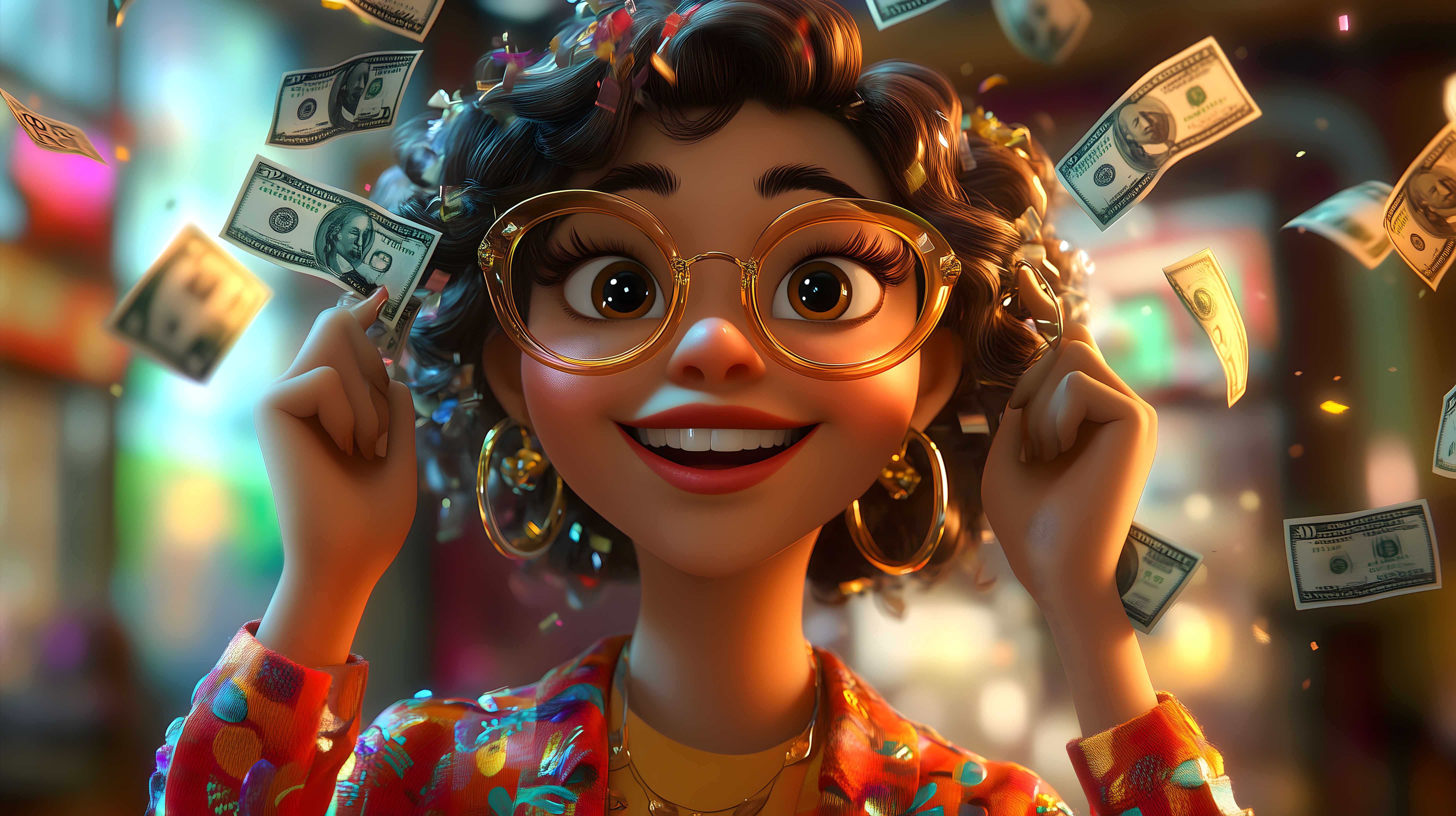 Dieses fantasievolle Stockfoto zeigt eine fröhliche Cartoon-Geschäftsfrau umgeben von Geldscheinen und buntem Konfetti. Mit einem breiten Lächeln und einer Brille blickt sie enthusiastisch in die Kamera. Die lebendigen Farben, die verspielten Texturen und die dynamische Komposition vermitteln ein Gefühl von Erfolg, Reichtum und Freude. Dieses Bild eignet sich hervorragend für den Einsatz in Werbekampagnen, Blogbeiträgen oder Social-Media-Posts, die ein positives, optimistisches und kreatives Unternehmensbild vermitteln möchten. Als kostenloses Stockfoto in hoher Auflösung unter einer Creative-Commons-Lizenz ist es vielseitig einsetzbar.