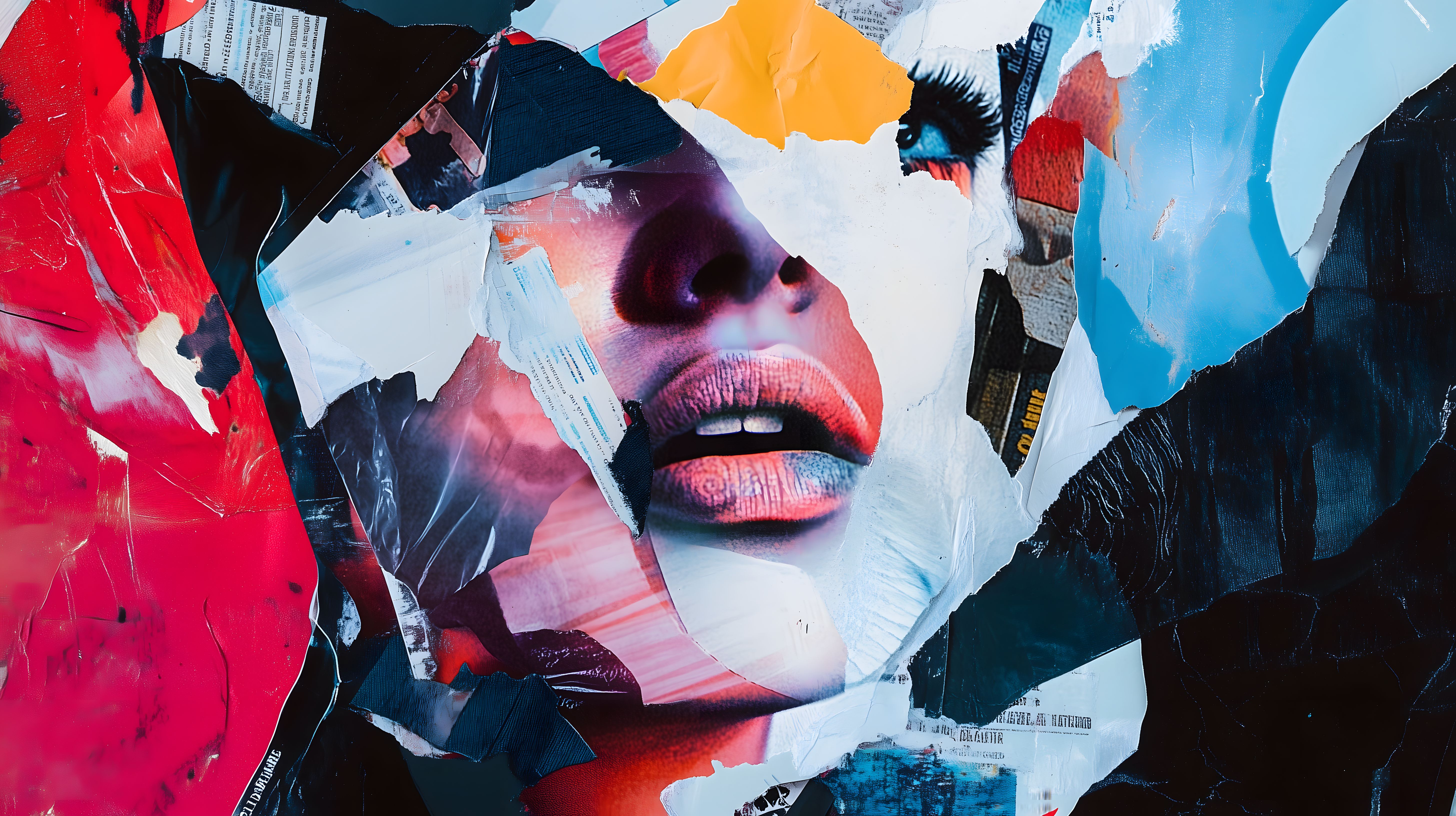 Diese ausdrucksstarke Gesichtscollage in leuchtenden Farben und zerrissenem Papier verkörpert die Intensität und Vielschichtigkeit menschlicher Emotion. Das Bild ist eine faszinierende Mischung aus abstrakten Formen, surrealen Elementen und digitaler Kreativität. Es lädt den Betrachter ein, die Tiefe und Poesie des Werkes zu entdecken und eigene Interpretationen und Assoziationen zu entwickeln. Dieses einzigartige, hochauflösende Stockfoto unter freier Lizenz eignet sich hervorragend für den Einsatz in Blogbeiträgen, Newsletter-Designs, Social-Media-Kanälen oder kreativen Werbematerialien. Es bietet Raum für visuelle Experimente und ein emotionales, modernes Storytelling.