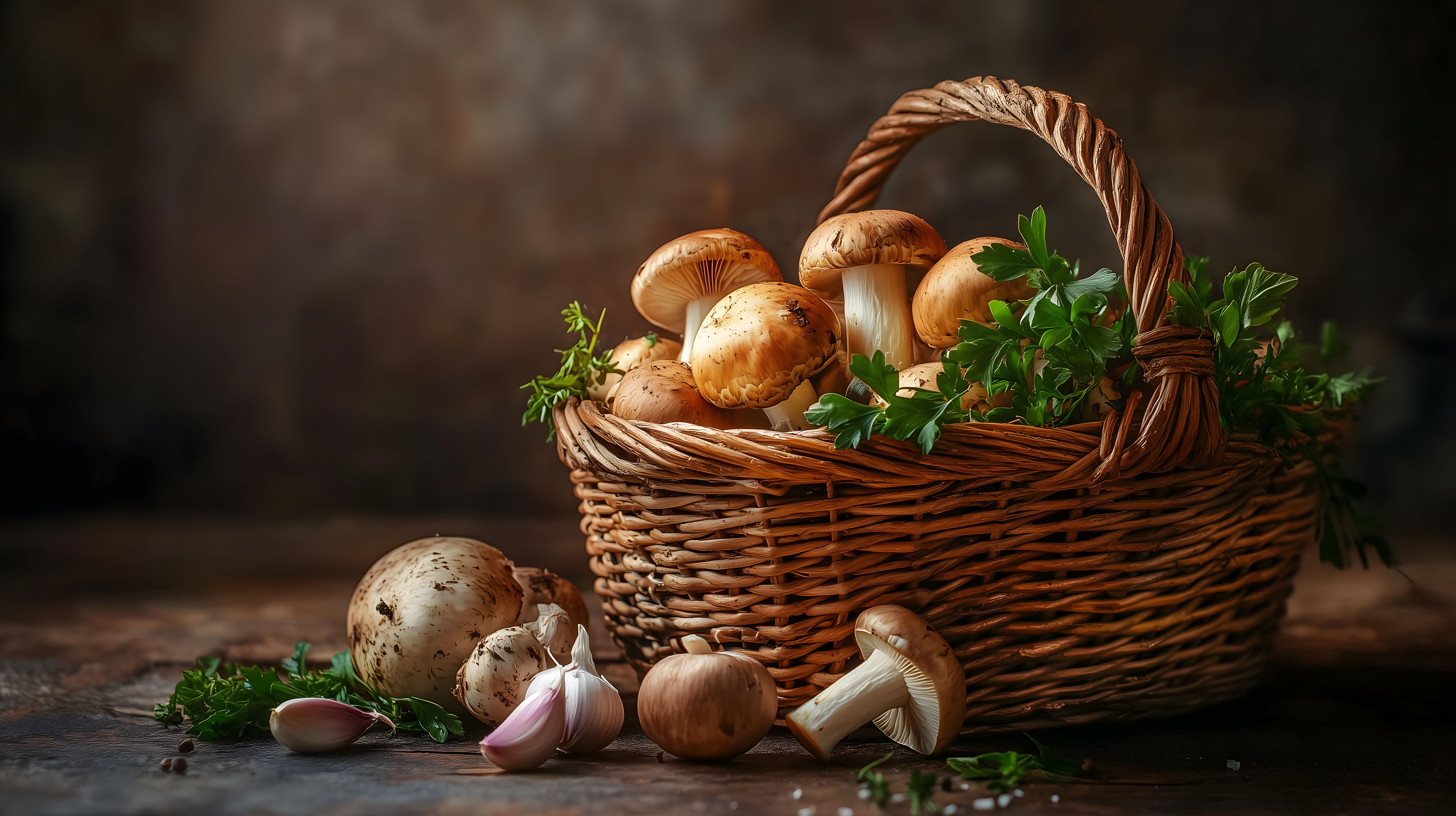 Dieses Foto zeigt einen Korb voller frischer Pilze und Kräuter in einer rustikalen Umgebung. Der Fokus liegt auf den natürlichen Zutaten, die sich perfekt für die Zubereitung gesunder, saisonaler Gerichte eignen. Die warmen Farbtöne und die rustikale Optik verleihen dem Bild eine gemütliche, authentische Atmosphäre. Dieses hochauflösende Stockfoto eignet sich hervorragend für Blogs, Newsletter, Social-Media-Beiträge oder Werbematerialien rund um Themen wie Kochen, Ernährung, Natur und Lifestyle. Es steht unter einer kostenlosen Creative-Commons-Lizenz zur Verfügung.