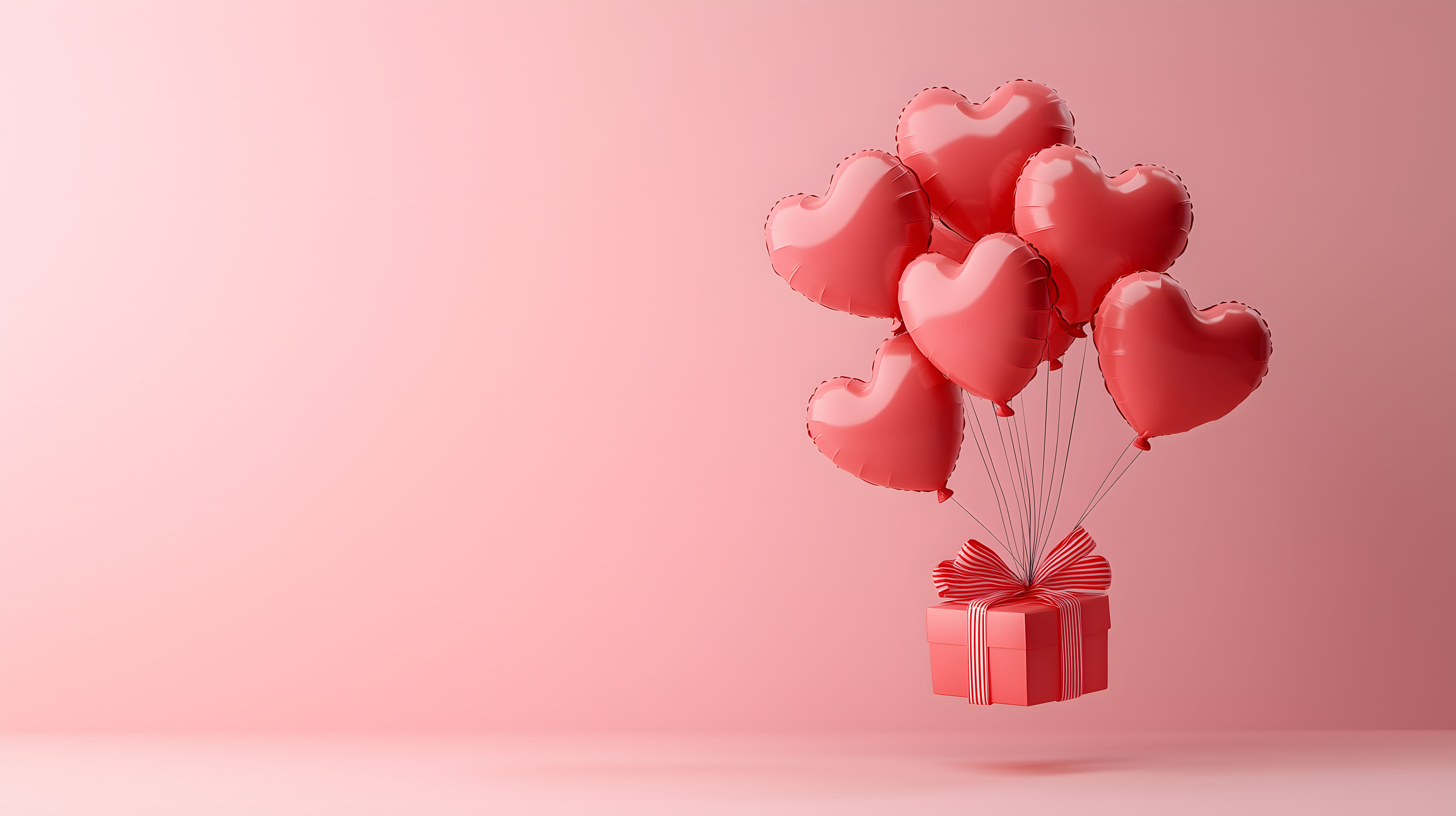 Das Bild zeigt einen romantischen Gruß zum Valentinstag oder anderen romantischen Anlässen. Es sind mehrere rote, herzförmige Luftballons zu sehen, die eine kleine, rot-weiß gestreifte Geschenkbox umrahmen. Die Ballons schweben vor einem einheitlichen rosafarbenen Hintergrund, der eine zarte, romantische Stimmung erzeugt. Dieses Bild eignet sich hervorragend für den Einsatz in Blogs, Newslettern, Social-Media-Beiträgen oder Werbematerialien zum Thema Liebe, Hochzeit oder Feiertage wie den Valentinstag. Es ist ein kostenloses Stockfoto in hoher Auflösung, das unter einer Creative-Commons-Lizenz verfügbar ist.