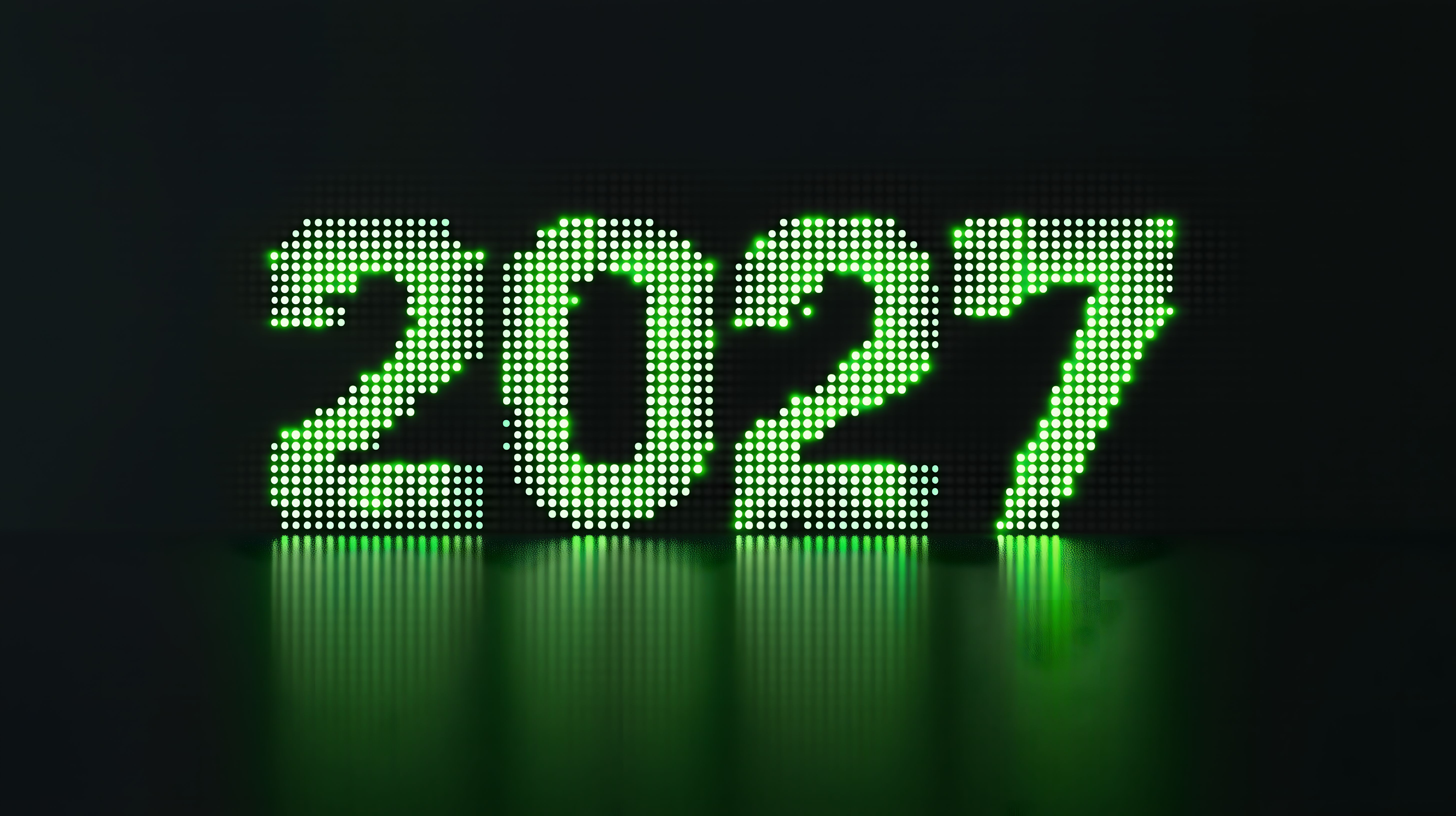 Dieses futuristische Bild zeigt ein LED-Display mit großen, grün leuchtenden Zahlen 20227 vor einem dunklen Hintergrund. Die Zahlen sind aus einzelnen, kreisförmigen Pixeln zusammengesetzt, die eine dynamische, technische Ästhetik erzeugen. Das Bild vermittelt einen Eindruck von Digitalität, Fortschritt und Moderne. Es eignet sich hervorragend als kostenloses Stockfoto für Blogs, Newsletter, Social-Media-Posts oder Werbematerialien mit einem technologischen, futuristischen Thema. Die hohe Auflösung und Creative-Commons-Lizenz ermöglichen eine vielfältige Nutzung des Bildes.