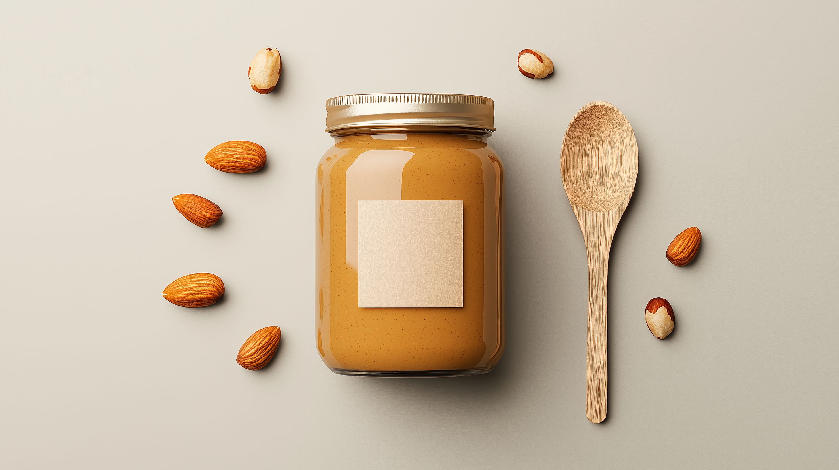 Dieses Foto zeigt ein Glas mit cremigem Mandelmus, umgeben von ganzen Mandelkernen und einem Holzlöffel. Die warmen, erdigen Farben des Bildes schaffen eine natürliche, appetitliche Atmosphäre. Das Foto eignet sich hervorragend für die Verwendung in Rezepten, Ernährungsratgebern oder Produktpräsentationen von gesunden, veganen Lebensmitteln. Als kostenloses Stockfoto in hoher Auflösung und unter Creative-Commons-Lizenz ist es vielseitig einsetzbar, z.B. in Blogs, Newslettern oder Social-Media-Beiträgen.
