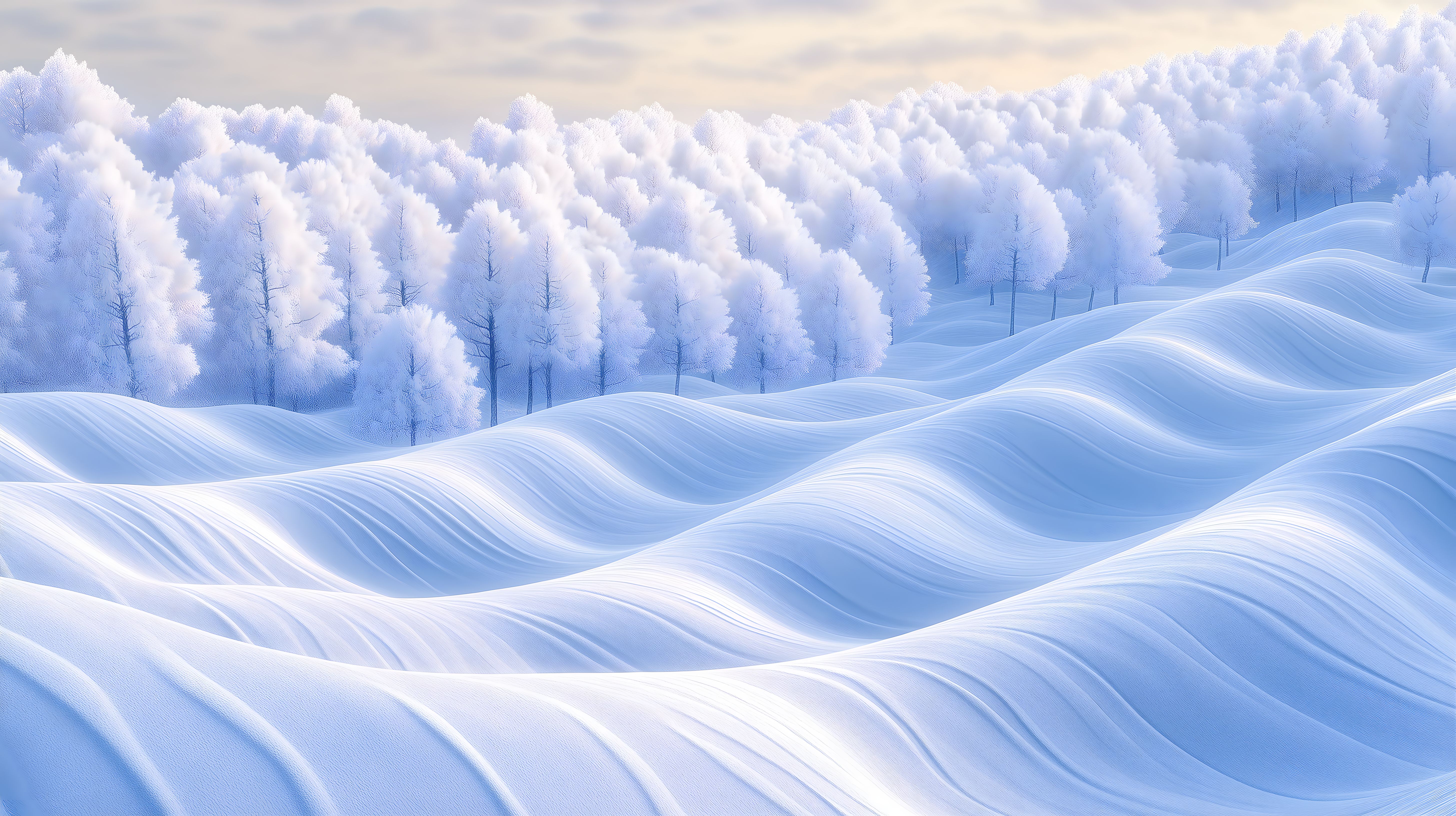 Dieses malerische Foto zeigt eine traumhafte Winterlandschaft mit sanft geschwungenen Schneewellen und einer Kulisse aus gefrorenen Bäumen. Das Bild strahlt eine friedliche, fast märchenhafte Stimmung aus und könnte perfekt als Hintergrundbild für Blogs, Social-Media-Posts oder Weihnachtsgrüße verwendet werden. Die pastelligen Blautöne und der minimale, reduzierte Stil verleihen dem Foto eine besonders ästhetische Note. Dieses kostenlose Stockfoto in hoher Auflösung steht unter der Creative-Commons-Lizenz zur Verfügung und kann somit frei genutzt werden.