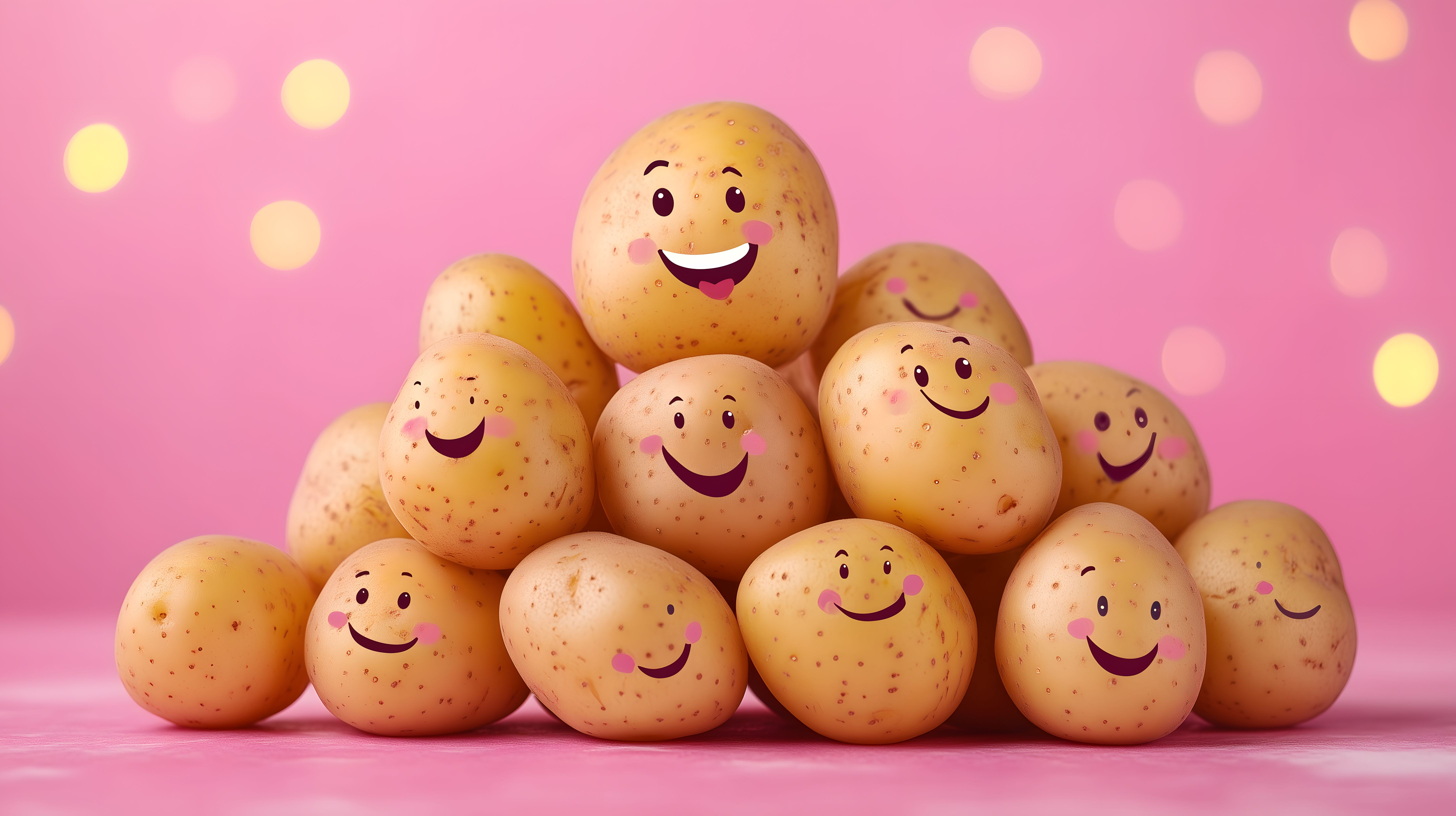 Dieses fröhliche Foto zeigt einen Stapel lachender Kartoffeln in einer rosa Umgebung. Die Kartoffeln tragen lustige Gesichter, die Freude und Lebensfreude ausstrahlen. Das Bild hat einen verspielten, positiven Charakter und könnte für verschiedene Zwecke verwendet werden, etwa in Werbung, sozialen Medien oder Newsletterbeiträgen, um eine fröhliche, natürliche Stimmung zu vermitteln. Dieses kostenlose Stockfoto in hoher Auflösung unter Creative-Commons-Lizenz ist perfekt geeignet, um Ihr digitales Projekt mit einem natürlichen, lebensfrohen Touch zu bereichern.