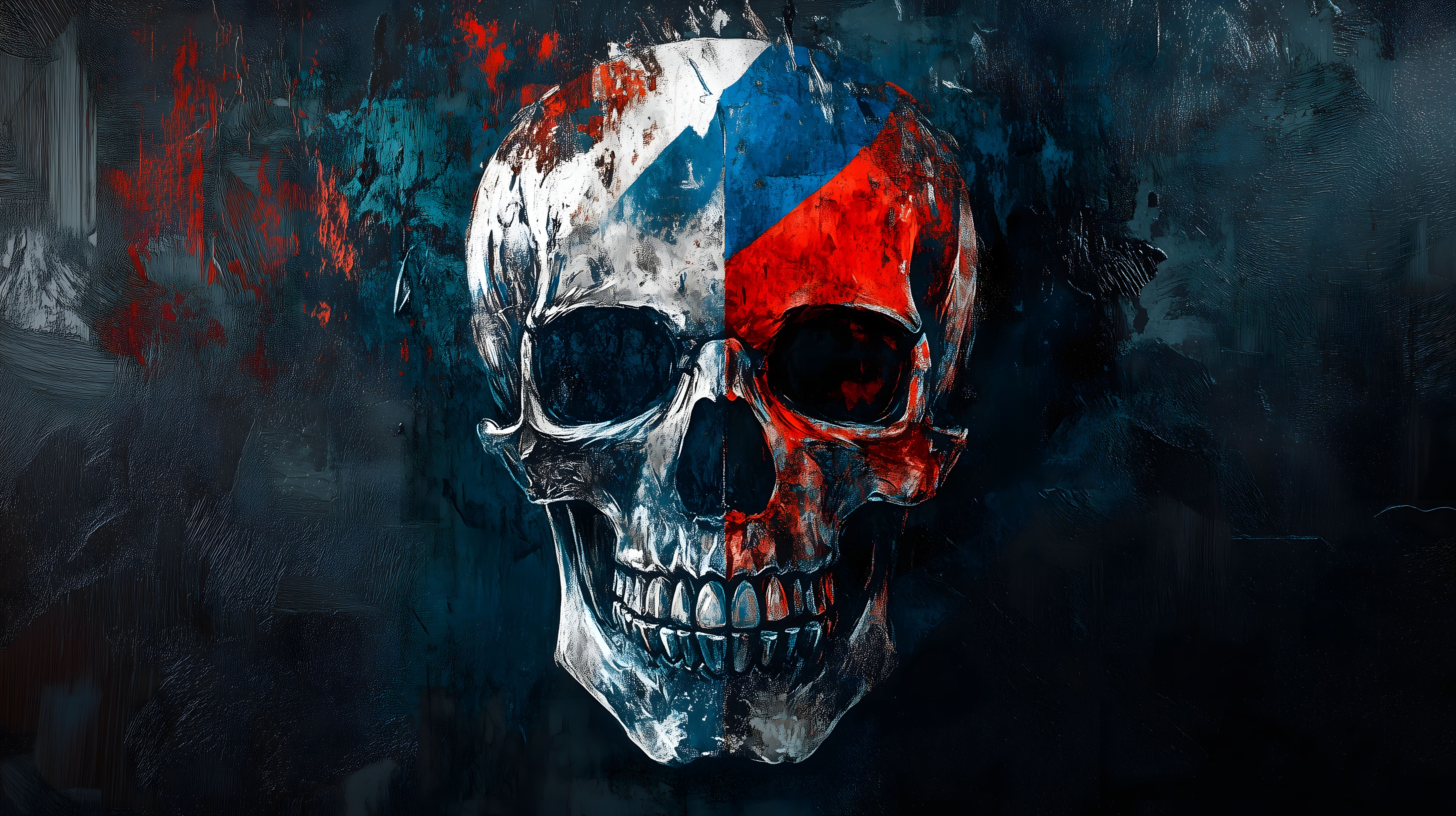 Dieses intensive und düstere digitale Kunstwerk zeigt einen Schädel mit der Flagge Russlands. Der Schädel ist in einem expressionistischen Stil gemalt, mit Farbtupfern in Rot, Blau und Schwarz. Die Darstellung vermittelt eine Stimmung von Bedrohung, Aggression und Rebellion. Dieses Bild könnte in Blogs, Newslettern, sozialen Medien oder Werbematerialien mit düsterer, politischer oder militärischer Thematik eingesetzt werden. Als kostenloses Stockfoto in hoher Auflösung und unter Creative-Commons-Lizenz eignet es sich ideal für vielfältige kreative Projekte.