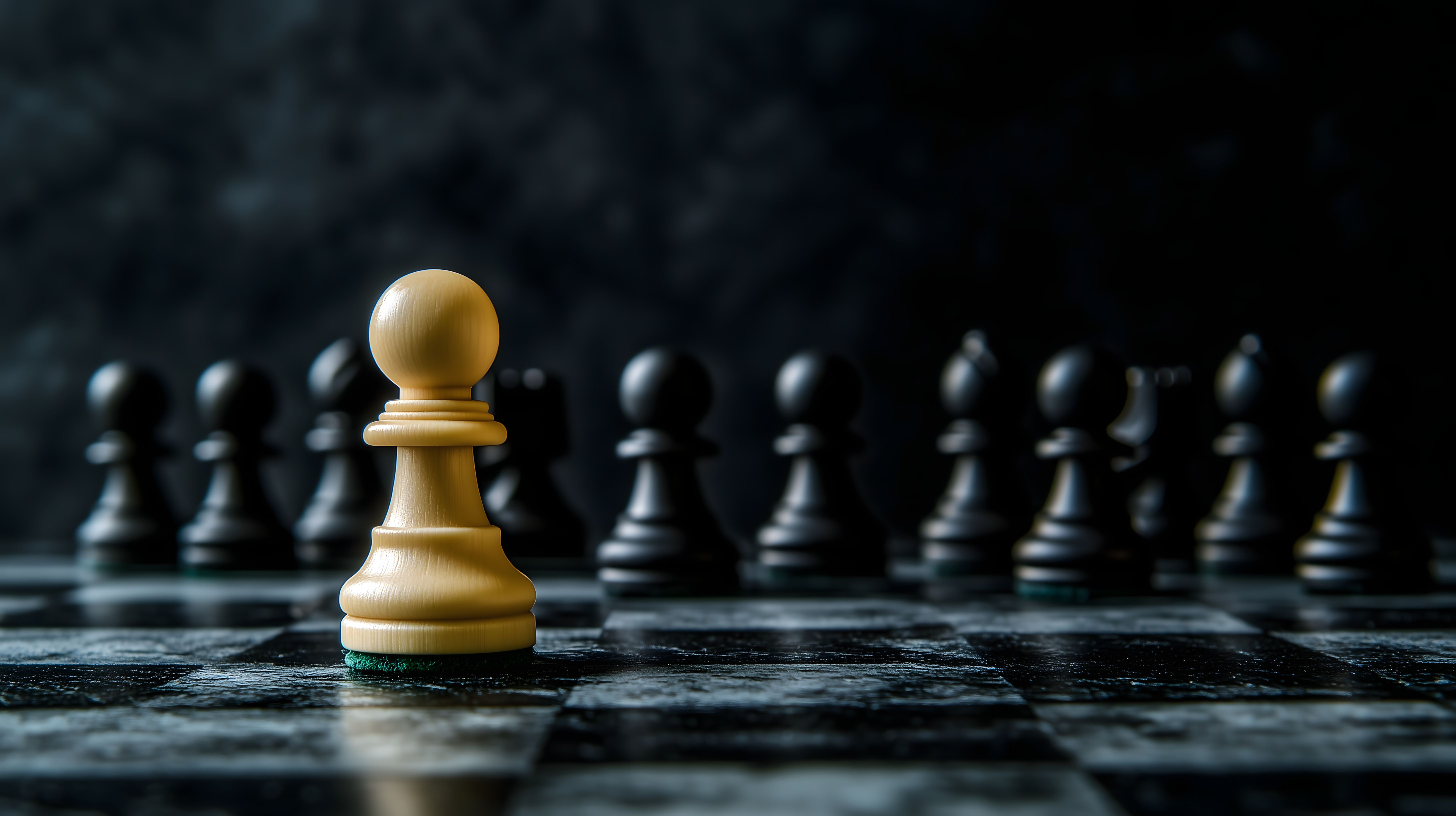 Dieses Bild zeigt eine Schachsituation, in der eine weiße Schachfigur, vermutlich ein Bauer, sich in strategischer Position zwischen den schwarzen Figuren befindet. Die dunkle Umgebung und der Fokus auf die Schachfiguren schaffen eine spannungsgeladene Atmosphäre, die an Strategie, Wettbewerb und Entscheidungsfindung erinnert. Das Foto eignet sich hervorragend für Anwendungen wie Blogbeiträge, Newsletter-Illustrationen oder Social-Media-Posts zum Thema Geschäftsführung, Führung und Problemlösung. Dieses hochauflösende, kostenlose Stockfoto steht unter einer Creative-Commons-Lizenz zur Verfügung.