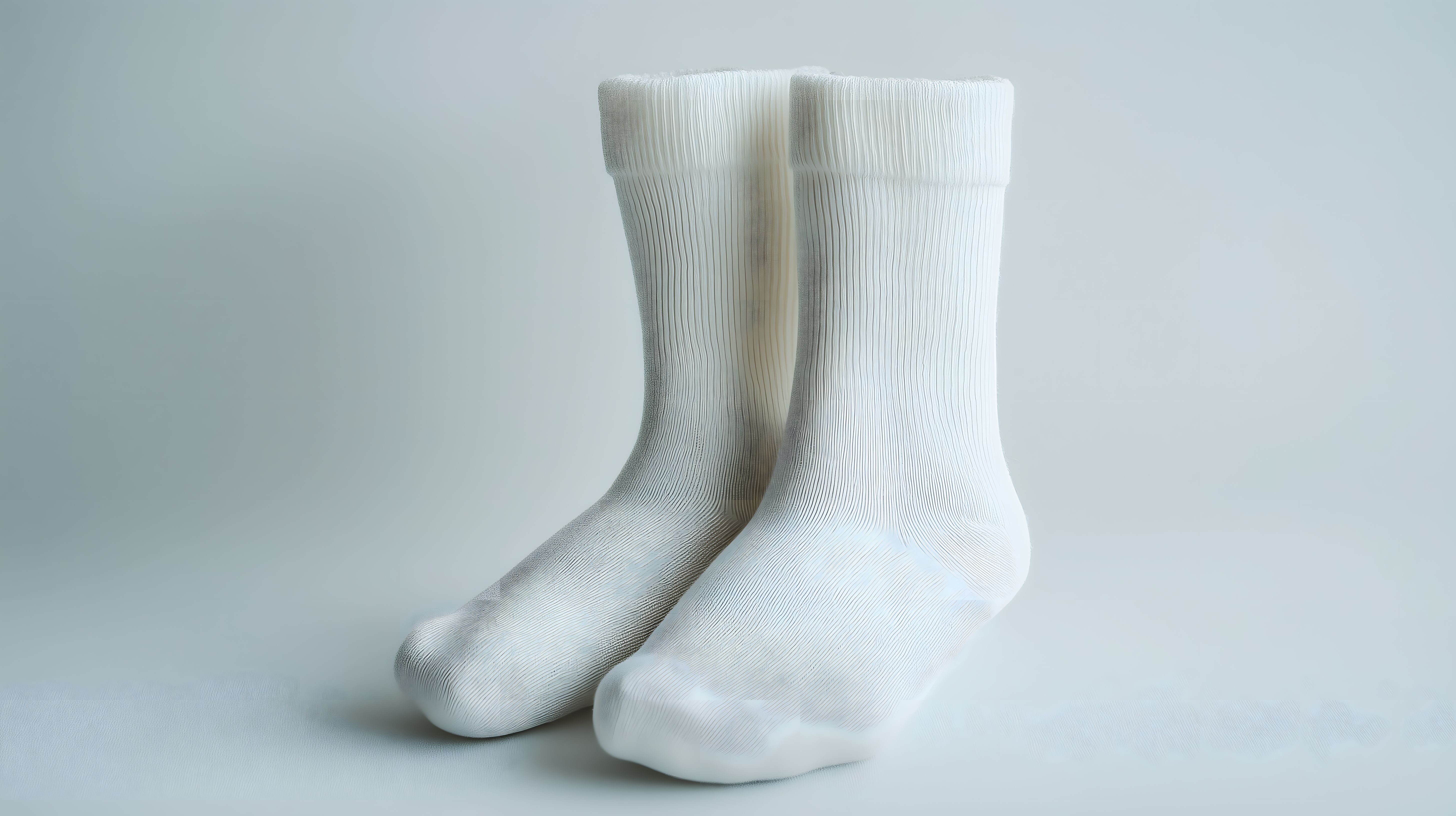 Dieses Foto zeigt ein Paar weiße, hochwertige Baumwollsocken auf einer hellen, neutralen Oberfläche. Die Socken haben eine feine, gerippte Textur und stehen im Mittelpunkt der Aufnahme. Das minimalistisch gehaltene Arrangement hebt die Eleganz und Schlichtheit der Sockenmaterialien hervor. Dieses Stockfoto eignet sich hervorragend für verschiedene Anwendungen, wie Blogbeiträge, Newsletter, Social-Media-Posts oder Werbematerialien im Bereich Mode, Lifestyle und Komfort. Das Bild ist in hoher Auflösung verfügbar und steht unter der Creative-Commons-Lizenz zur freien Verwendung bereit.