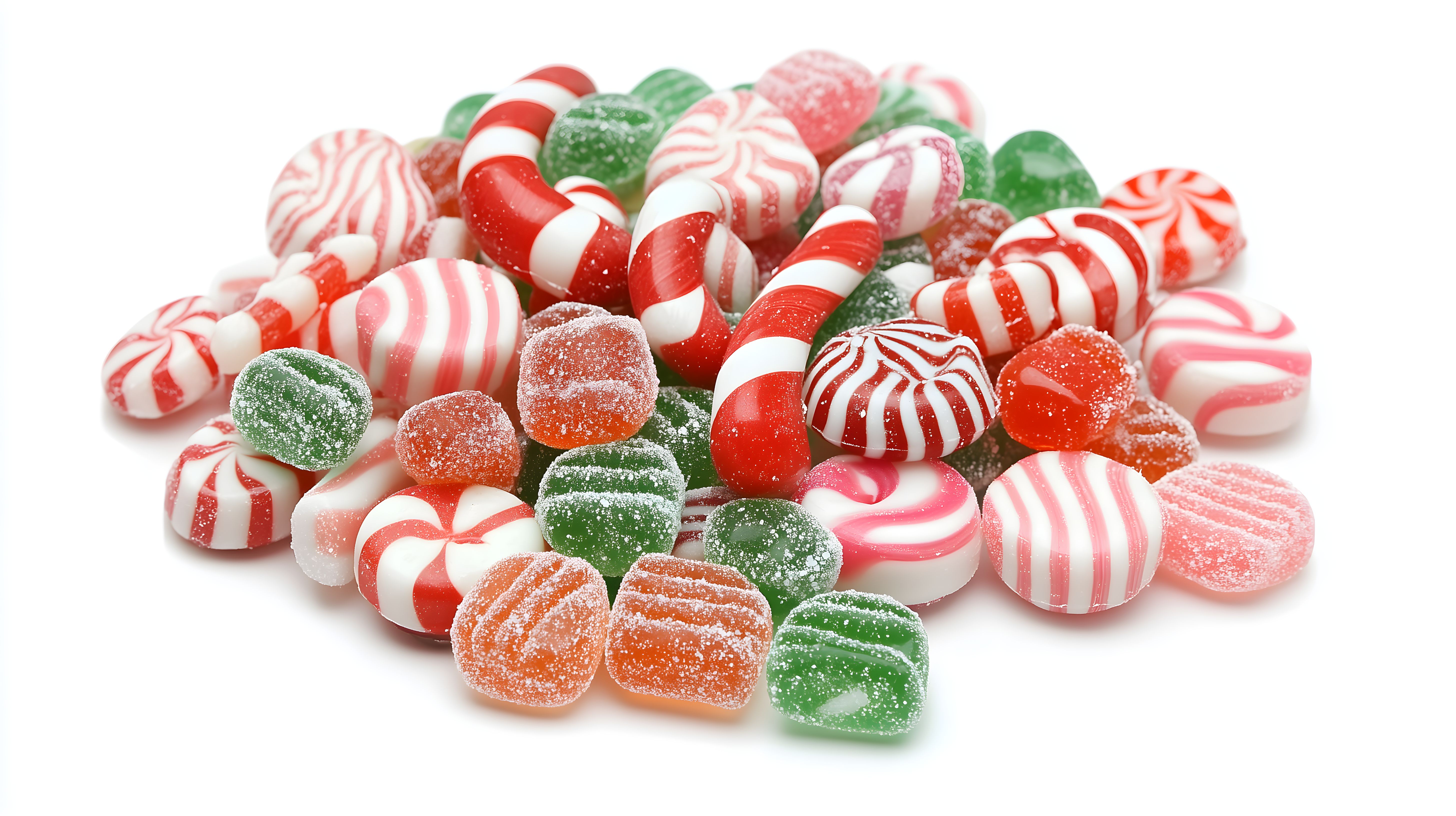 Dieses Foto zeigt eine bunte Mischung aus verschiedenen Weihnachtskaramellen und Zuckerstangen auf weißem Hintergrund. Die Süßigkeiten in festlichen Rot- und Grüntönen sowie mit Streifenmuster verleihen dem Bild einen weihnachtlichen Charakter. Die Anordnung in einem Haufen lässt die Süßigkeiten wie ein leckeres Festtagsgebäck erscheinen. Dieses hochauflösende Stockfoto eignet sich hervorragend für Weihnachtsdekorationen, Werbung, Social Media-Posts oder Blogbeiträge rund um das Thema Weihnachten und Süßigkeiten. Es steht unter einer Creative-Commons-Lizenz zur freien Verwendung zur Verfügung.