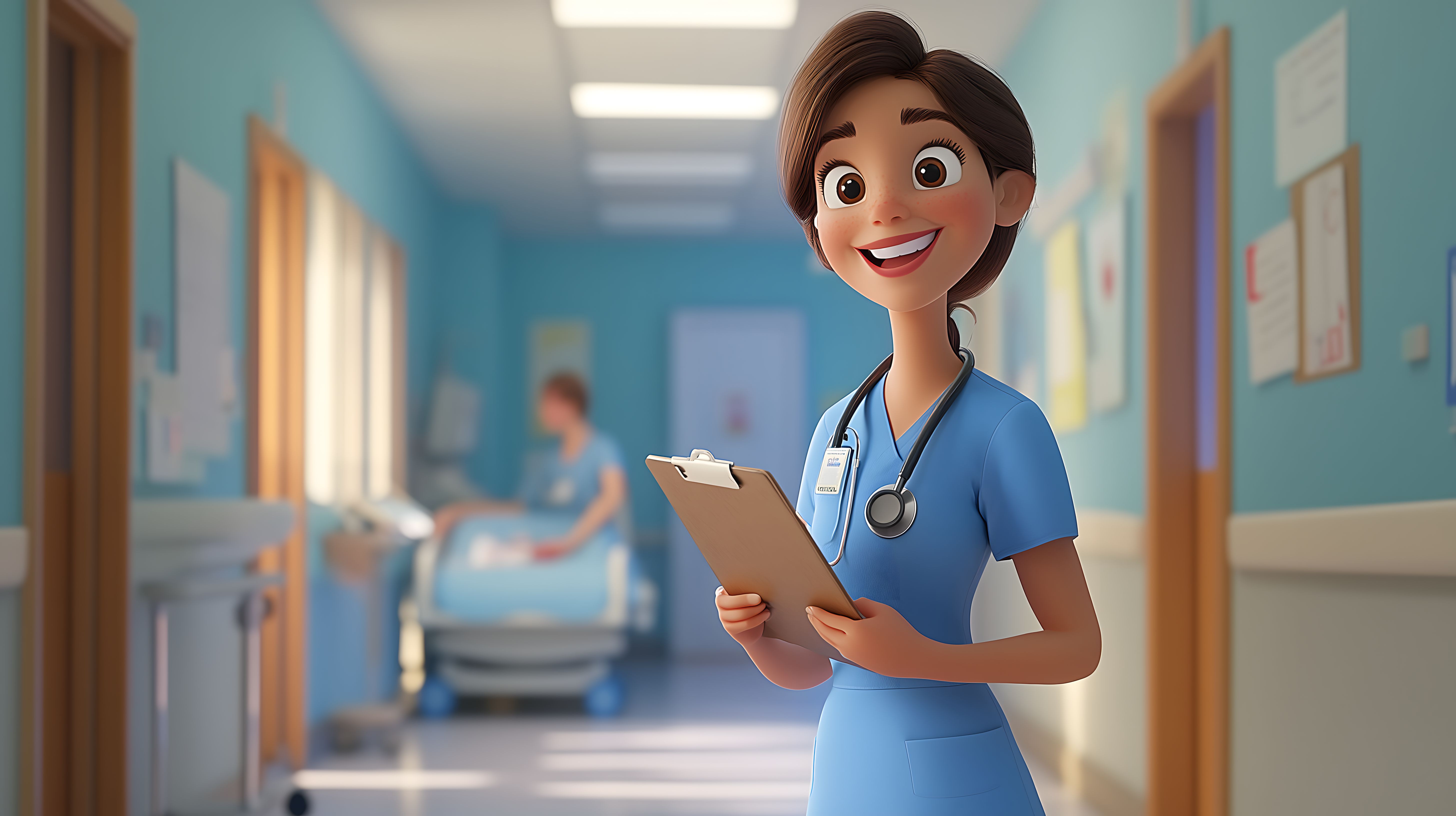 Das Bild zeigt eine freundliche Ärztin oder Krankenschwester, die einen Korridor in einem Krankenhaus entlanggeht. Sie trägt eine blaue Arbeitskleidung und hält ein Klemmbrett in der Hand. Im Hintergrund sind weitere Personen zu sehen, die offenbar Patienten oder Besucher sind. Der Korridor ist in einem hellen Blauton gehalten, was eine beruhigende und professionelle Atmosphäre vermittelt. Dieses kostenlose Stockfoto in hoher Auflösung unter Creative-Commons-Lizenz eignet sich hervorragend für den Einsatz in Blogbeiträgen, Newslettern, Social-Media-Posts oder Werbematerialien rund um das Thema Gesundheitswesen, Medizin und Pflege.