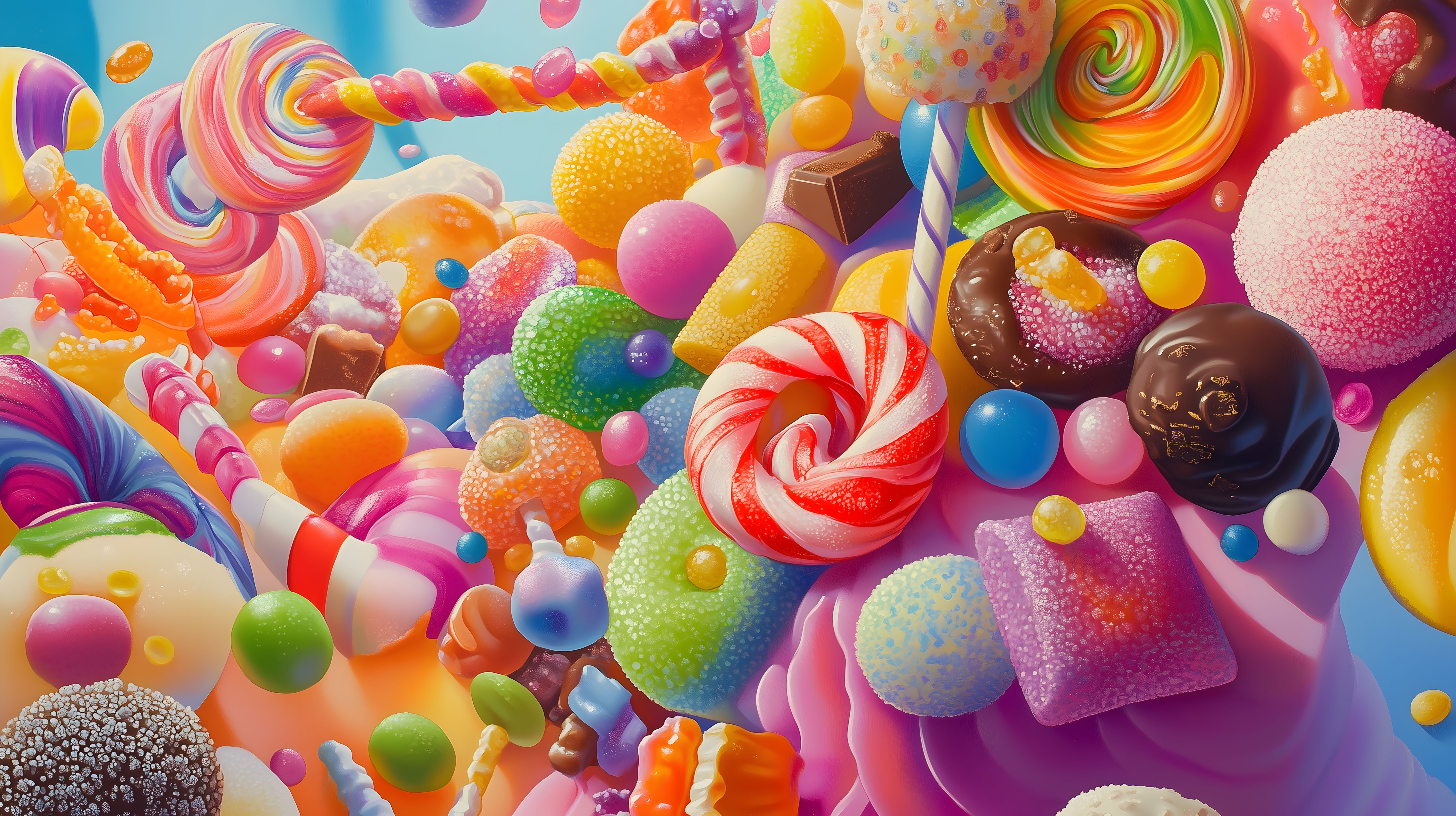 Dieses bunte und lebendige Foto zeigt eine wundervolle Anordnung verschiedenster Süßigkeiten in leuchtenden Regenbogenfarben. Von Lutschen und Gummibärchen über Zuckerwatte und Schokolade bis hin zu bunten Bonbons und Konfetti bietet das Bild einen verspielten, fröhlichen und kreativen Hintergrund für Designs, Werbung oder Social Media-Beiträge. Mit seiner hohen Auflösung und der Verfügbarkeit unter einer Creative Commons-Lizenz eignet sich das Foto hervorragend als kostenfreie Stockfoto-Ressource.