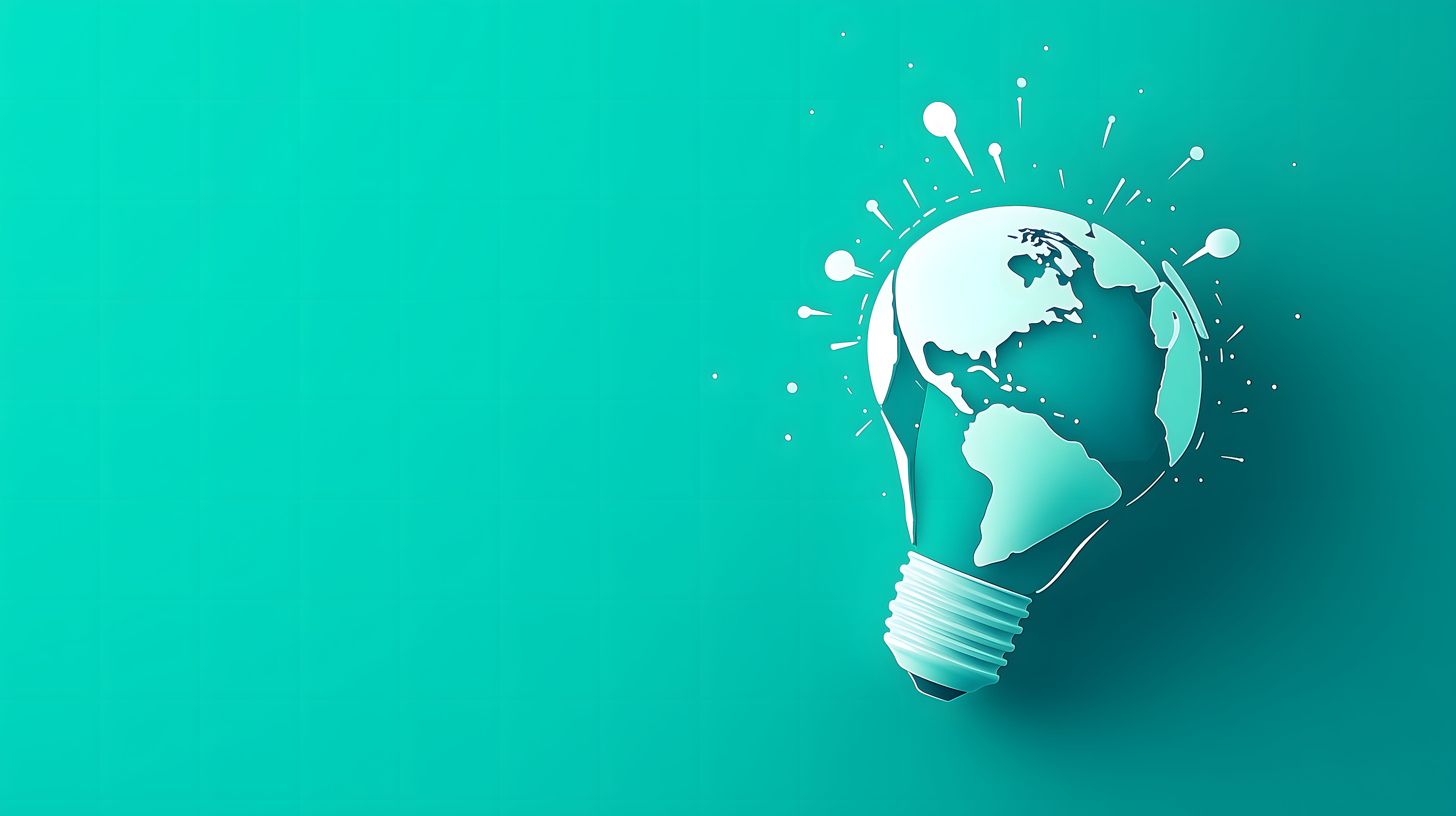 Dieses kreative Stockfoto zeigt eine Glühbirne, in der eine Erdkugel eingebettet ist. Das Bild vermittelt das Konzept von Innovation, nachhaltiger Zukunft und Umweltbewusstsein. Mit dem Kontrast zwischen dem leuchtenden Globus und der schlichten, türkisfarbenen Umgebung entsteht eine minimalistisch-moderne Optik, die sich hervorragend für Blog-Beiträge, Newsletter-Designs oder Social-Media-Postings eignet.