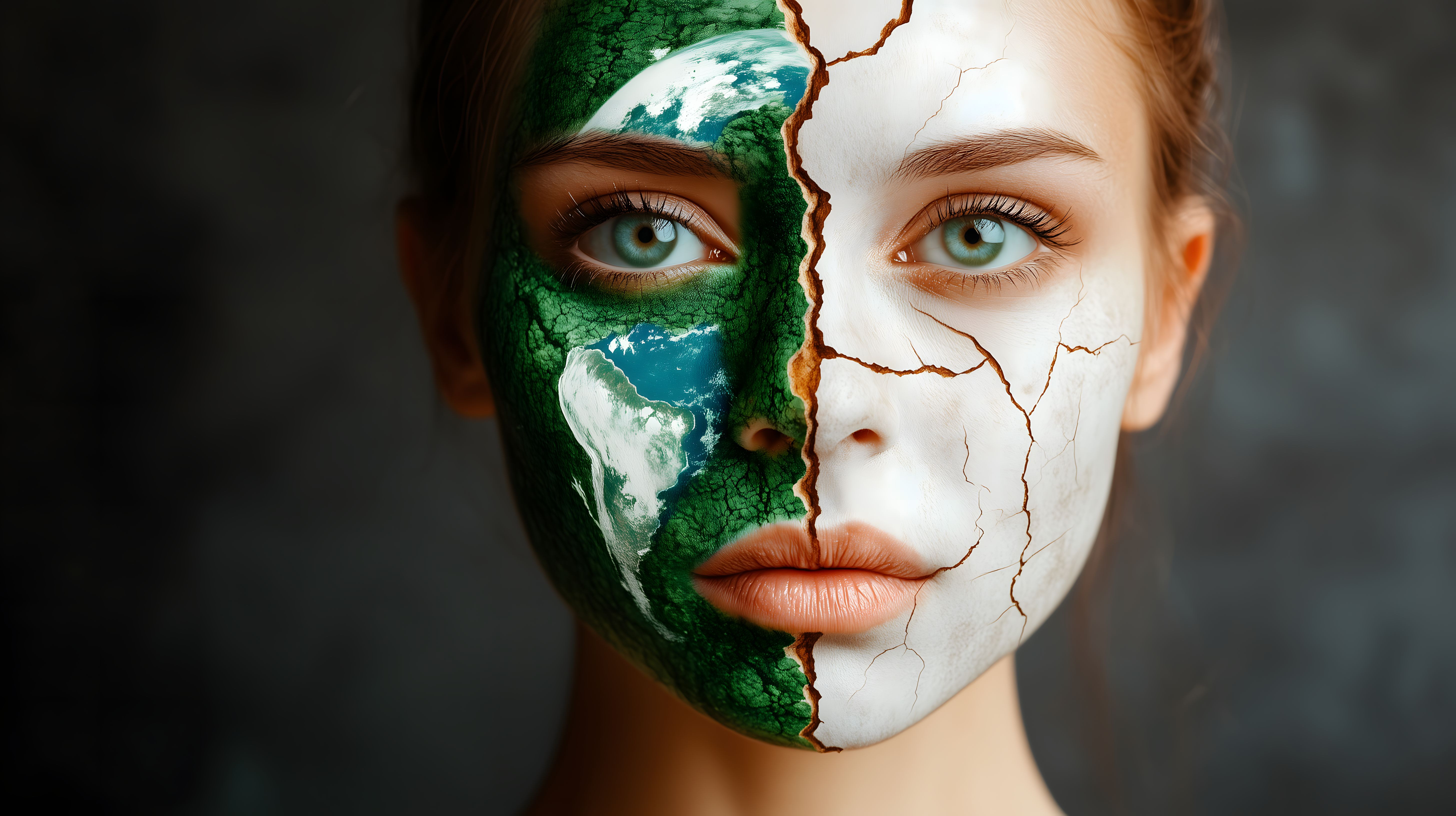 Dieses Porträt einer jungen Frau, deren Gesicht mit einem detailreichen Erdglobus-Motiv bemalt ist, vermittelt eine starke Botschaft über den Umweltschutz und die Nachhaltigkeit. Die Risse in der Gesichtsbemalung symbolisieren die zunehmenden Schäden an unserer Erde, während der intensive Blick der Frau den Betrachter zu einem Umdenken und Handeln auffordert. Das Foto eignet sich hervorragend für Blogbeiträge, Social-Media-Posts oder Werbematerialien zu Themen wie Klimawandel, Umweltschutz und Nachhaltigkeit. Als kostenloses Stockfoto in hoher Auflösung und unter einer Creative-Commons-Lizenz bietet es vielfältige Einsatzmöglichkeiten.