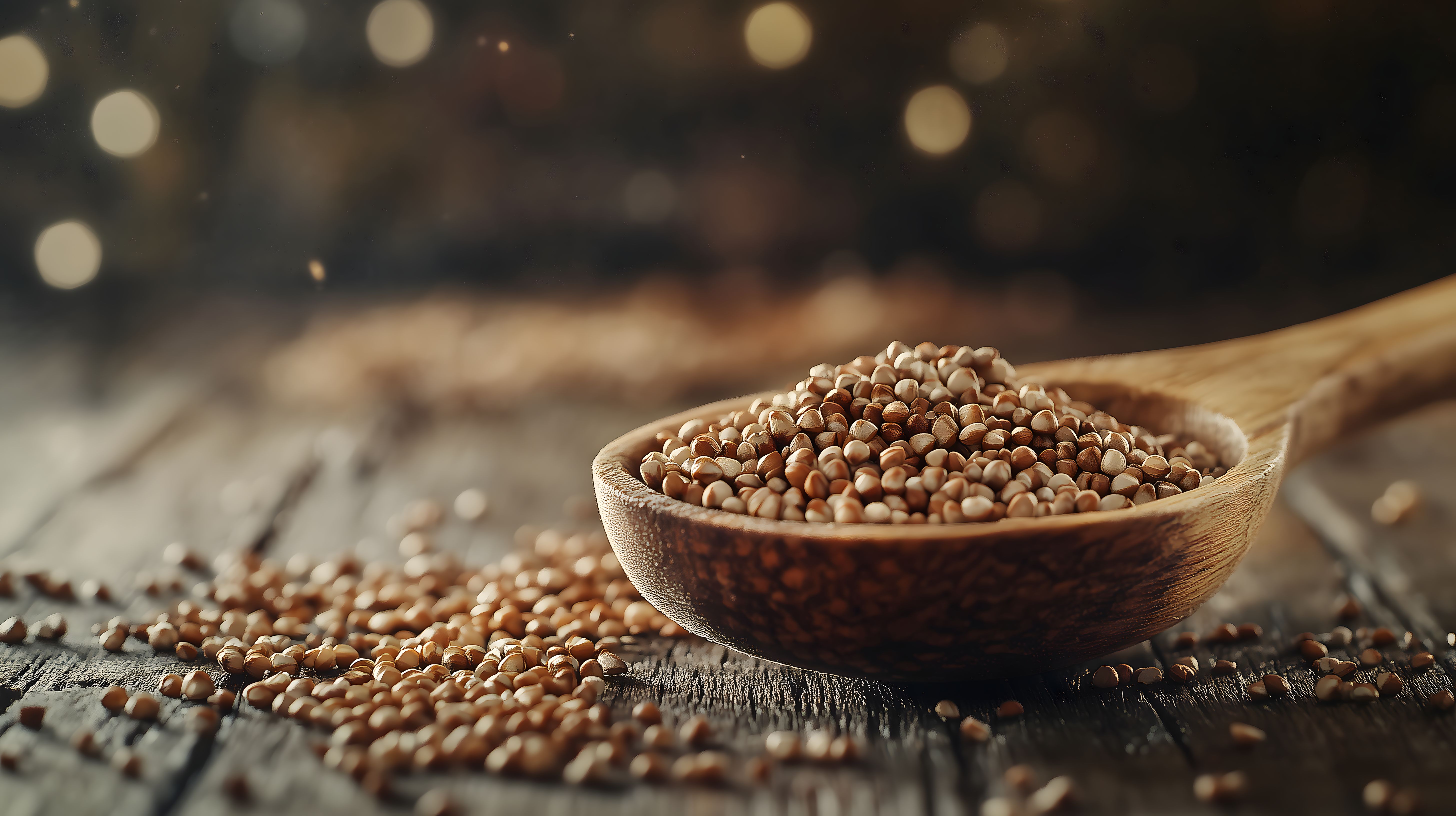 Diese eindrucksvolle Nahaufnahme zeigt eine Schüssel voller Buchweizenkörner auf einem rustikalen Holzuntergrund. Die Körner haben eine goldbraune Farbe und sind in perfekter Schärfe zu sehen, was eine hohe Qualität der Aufnahme vermittelt. Der Hintergrund ist leicht unscharf und verleiht dem Bild eine stimmungsvolle, natürliche Atmosphäre mit Bokeh-Effekt. Das Foto eignet sich perfekt als kostenloses Stockfoto für verschiedene Einsatzbereiche wie Blogbeiträge, Newsletter, Social-Media-Posts oder Werbematerialien zum Thema Gesundheit, Ernährung und Lebensmittel. Es steht unter einer Creative-Commons-Lizenz zur Verfügung und ist in hoher Auflösung downloadbar.