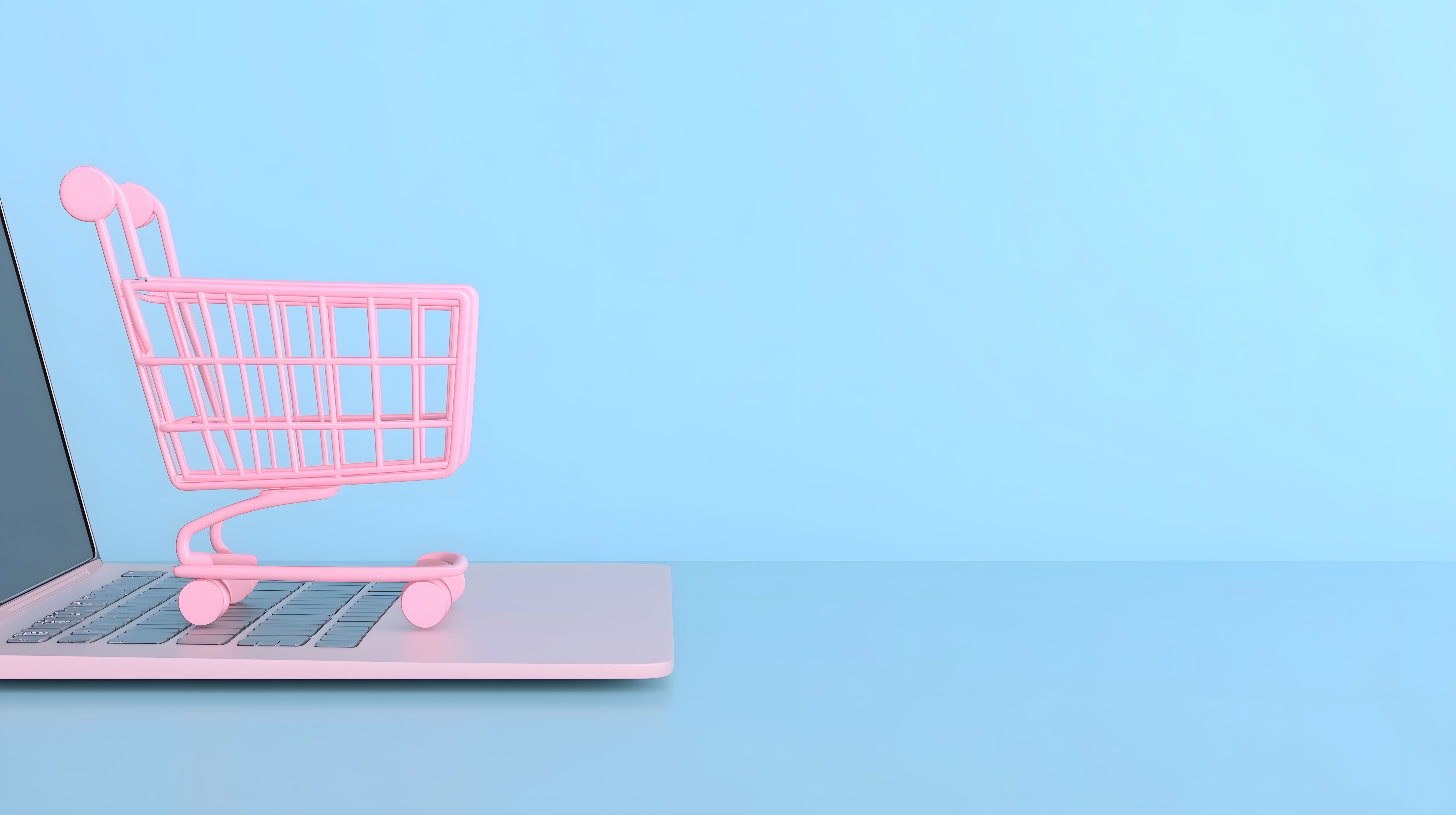 Das Bild zeigt einen rosa Einkaufskorb, der auf einem Laptop platziert ist. Der Hintergrund ist in einem schlichten, pastellblauen Farbton gehalten, was dem Bild eine minimalistische und moderne Ausstrahlung verleiht. Die geometrische Form des Einkaufskorbs und die glatte Oberfläche des Laptops kontrastieren miteinander und schaffen ein interessantes visuelles Zusammenspiel. Dieses Stockfoto kann für verschiedene Zwecke wie Werbekampagnen, Blogbeiträge, Social-Media-Posts oder Newsletter-Designs eingesetzt werden. Es ist in hoher Auflösung verfügbar und unter einer Creative-Commons-Lizenz frei nutzbar.
