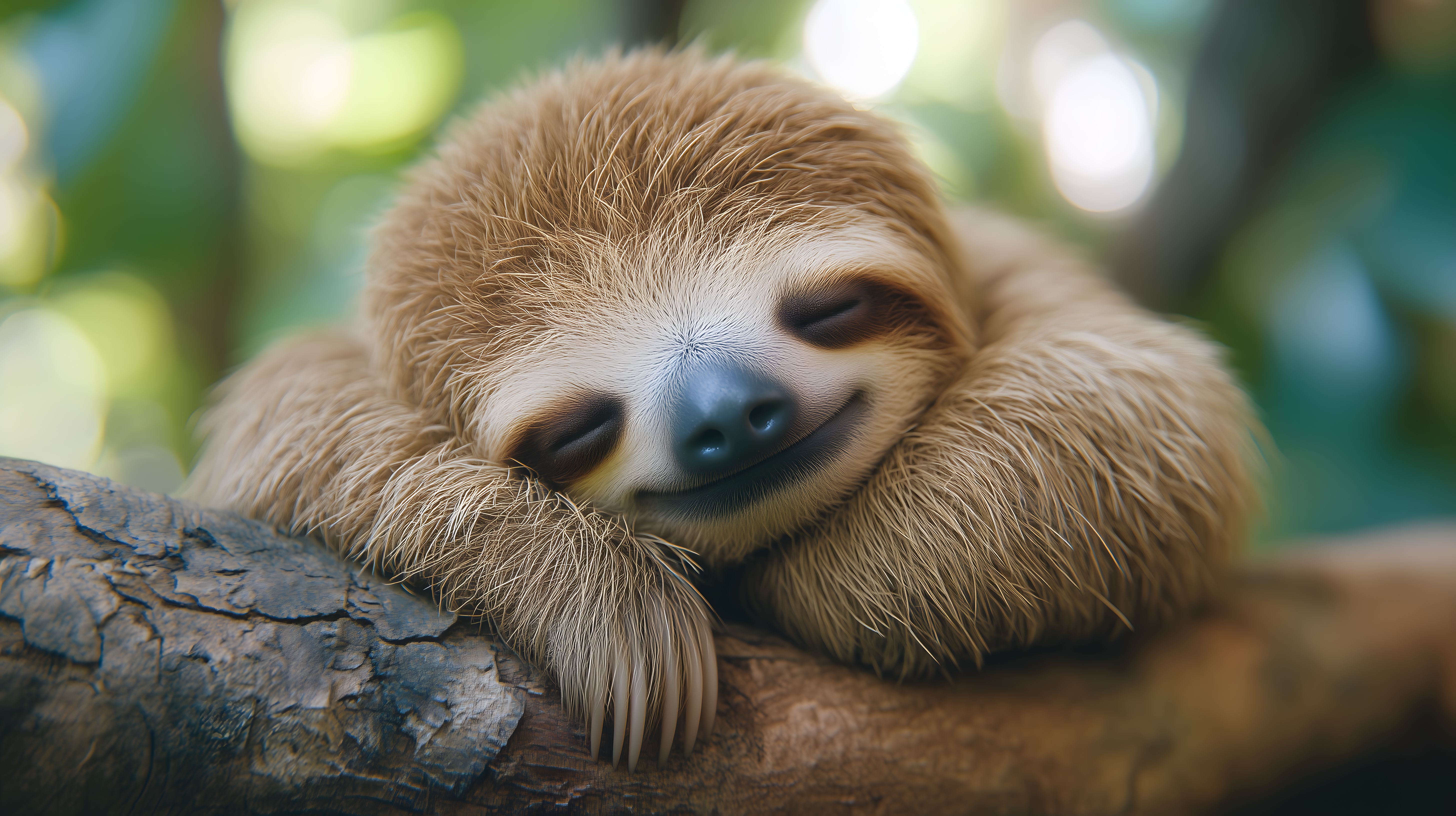 Das Bild zeigt ein süßes Faultier, das verträumt auf einem Baumstamm in einer natürlichen Umgebung schlummert. Mit seiner weichen, braunen Fellpracht und dem entspannten Gesichtsausdruck strahlt es eine beruhigende Ruhe und Gelassenheit aus. Die grüne Umgebung mit Blättern und Zweigen verleiht dem Motiv eine friedliche, waldige Atmosphäre. Dieses einzigartige Stockfoto ist in hoher Auflösung verfügbar und kann kostenlos unter der Creative-Commons-Lizenz verwendet werden - ideal für Blogs, Newsletter, Social-Media-Kanäle oder andere Werbezwecke, bei denen ein natürliches, naturverbundenes Motiv gesucht wird.