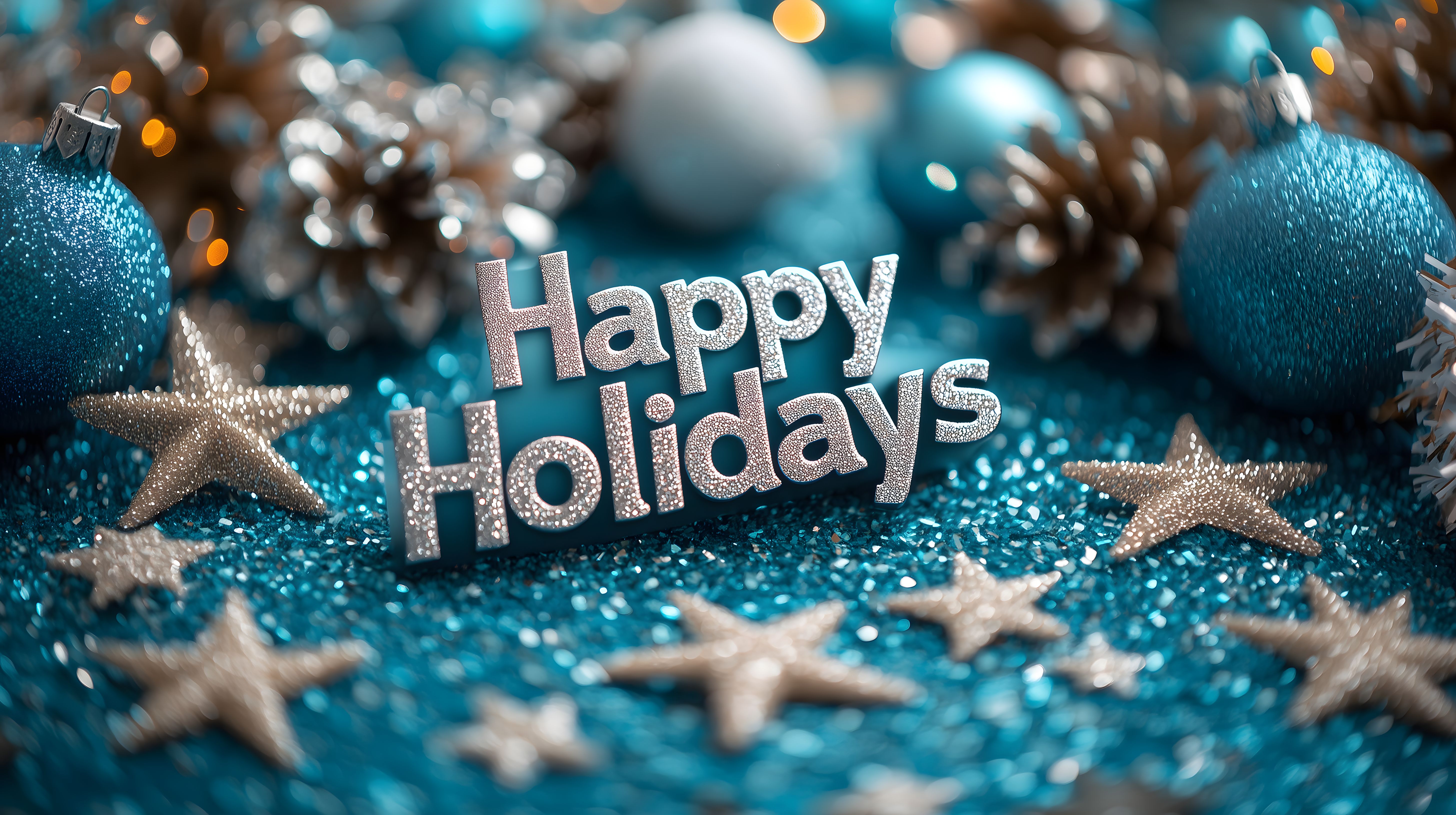 Dieses festliche Weihnachtsfoto zeigt eine zauberhafte Szenerie mit glitzernden Weihnachtskugeln in verschiedenen Blautönen, umgeben von Sternen und einem funkelnden 'Happy Holidays'-Schriftzug. Die stimmungsvolle Komposition aus Dekorationselementen und dem leuchtenden Textbanner vermittelt eine festliche, winterliche Atmosphäre und eignet sich hervorragend als Hintergrund für Weihnachts- und Neujahrskampagnen, Grußkarten oder Blogbeiträge. Dieses kostenlose Stockfoto in hoher Auflösung steht unter der Creative-Commons-Lizenz zur Verfügung.