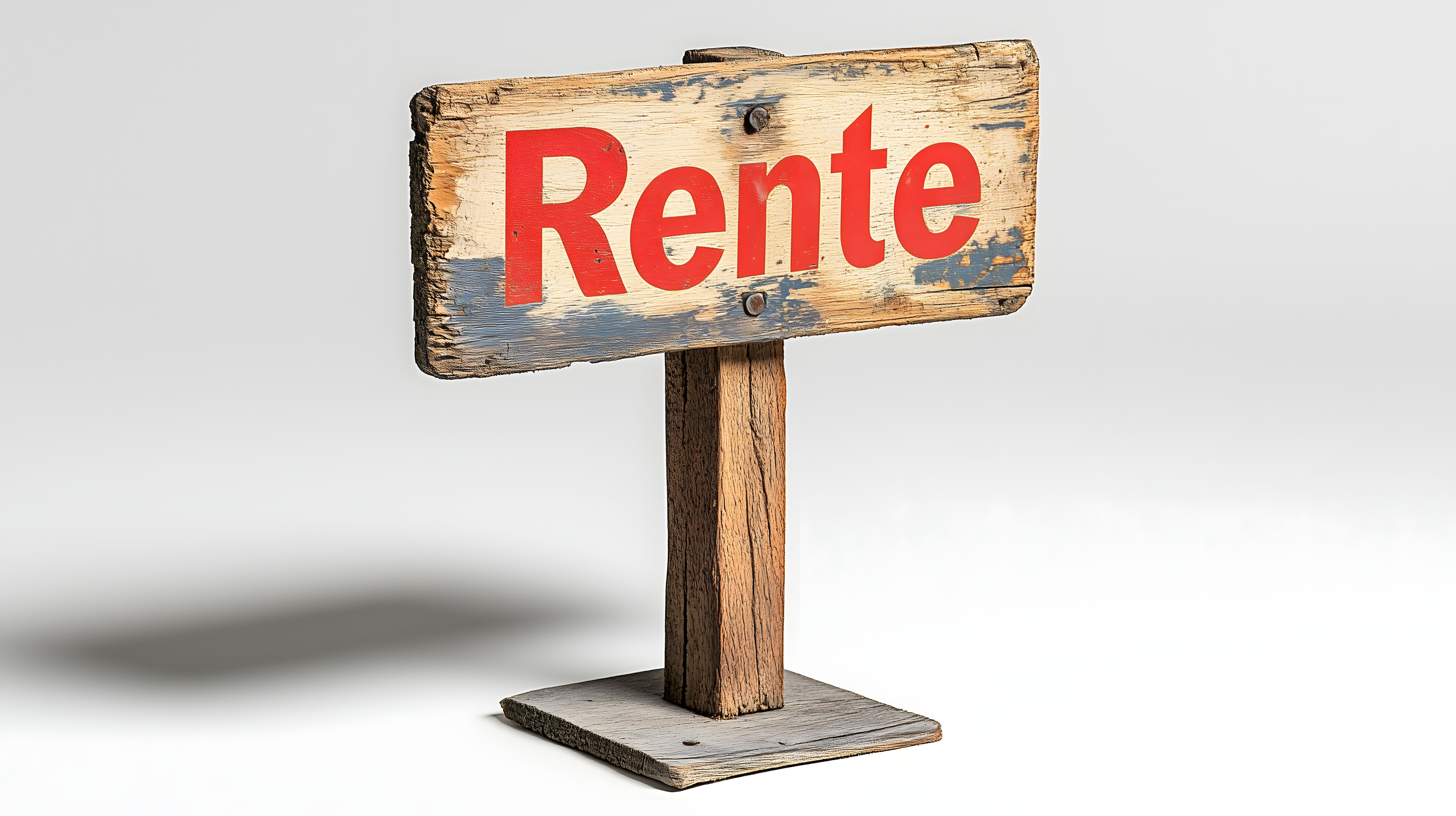 Das Bild zeigt ein rustikales Holzschild mit der Aufschrift 'Rente' auf einem einfachen Holzpflock. Das Schild ist leicht verwittert und abgenutzt, was ihm einen authentischen, vintage-artigen Look verleiht. Die Farbgebung ist reduziert, mit einem Kontrast zwischen dem rötlichen Braun des Holzes und dem kräftigen Rot der Aufschrift. Diese Kombination sorgt für einen schlichten, aber dennoch auffälligen visuellen Akzent. Dieses Stockfoto eignet sich hervorragend für Beiträge zum Thema Altersvorsorge, Renteneintritt oder den Ruhestand, z.B. in Blogs, Newslettern oder Werbematerialien. Es ist in hoher Auflösung verfügbar und unter einer Creative Commons-Lizenz für die kommerzielle und private Nutzung freigegeben.