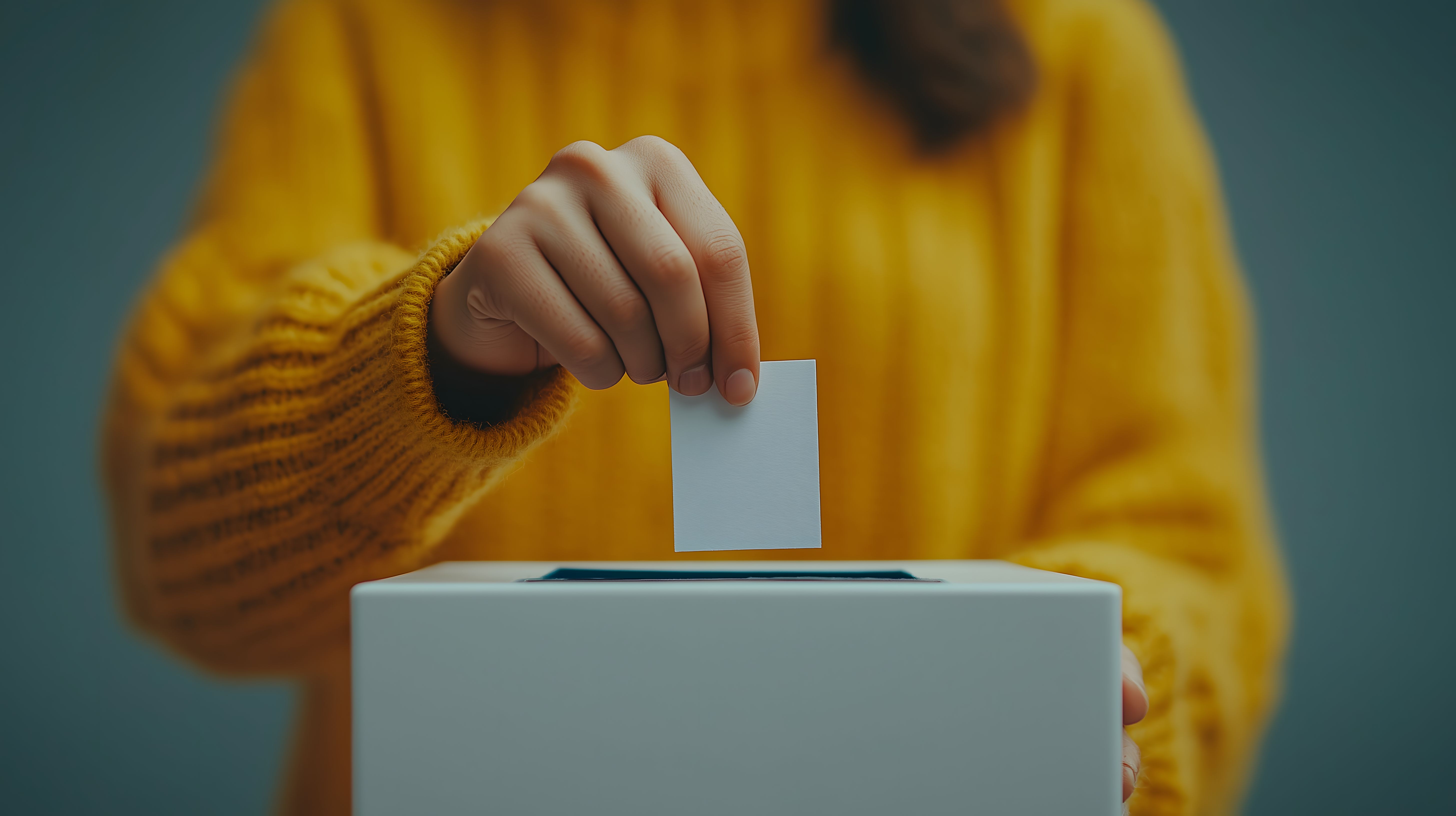 Das Foto zeigt eine Hand, die einen weißen Stimmzettel in eine Wahlurne einwirft. Die Szene vermittelt den Akt des demokratischen Wählens und der Teilnahme an politischen Entscheidungen. Der Kontrast zwischen der warmen, gelben Kleidung und der kühlen, grauen Umgebung schafft eine spannungsvolle Komposition. Dieses Stockfoto eignet sich ideal für Illustrationen zum Thema Demokratie, Wahlen und politische Beteiligung, etwa in Blogbeiträgen, Newslettern oder Werbematerialien. Es ist in hoher Auflösung und unter einer Creative-Commons-Lizenz verfügbar, sodass es kostenfrei genutzt werden kann.