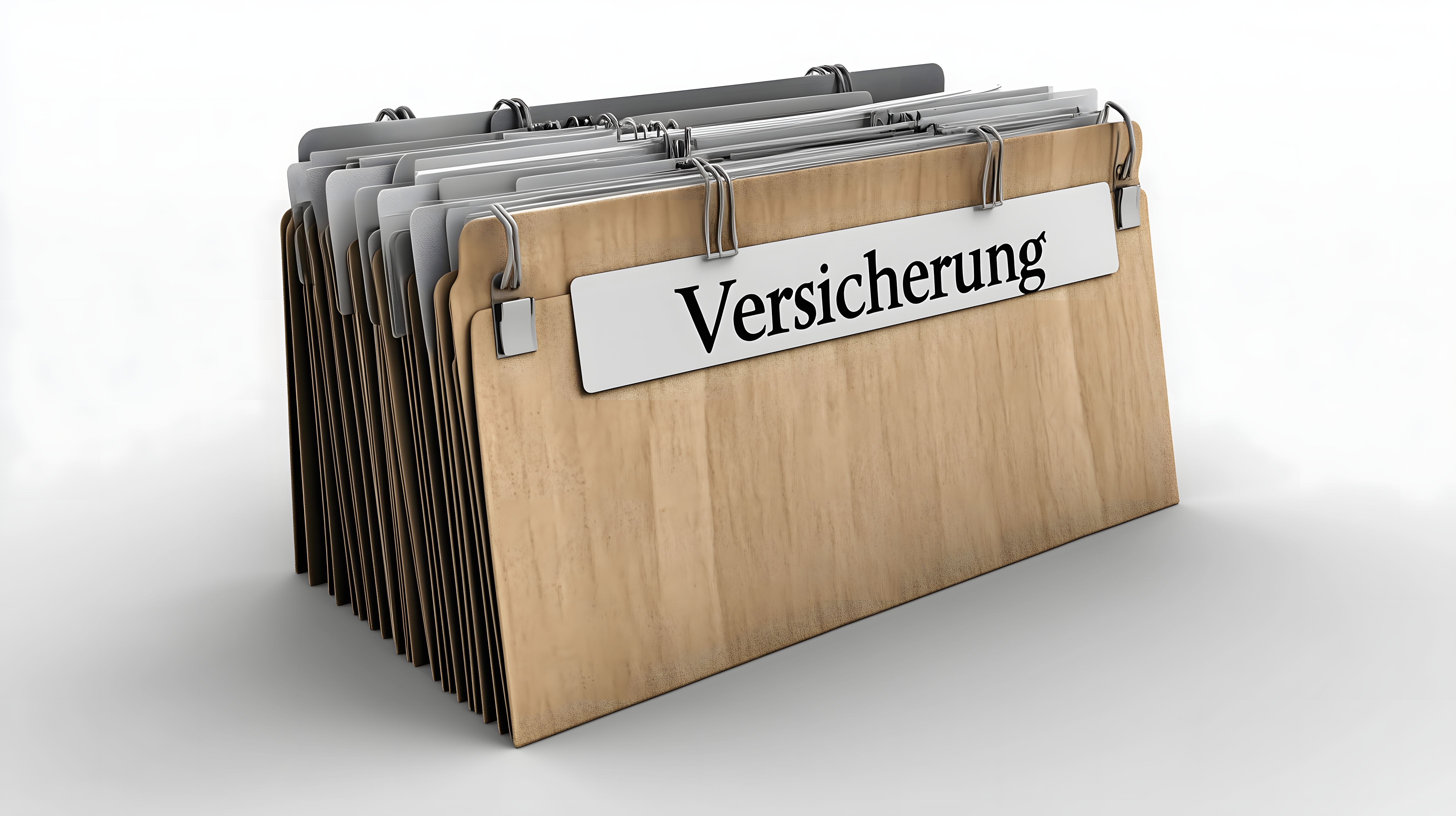 Das Bild zeigt einen Stapel von Mappen in Holz-Optik, die als Registerkarten für Versicherungsunterlagen verwendet werden können. Die Mappen haben weiße Etiketten mit dem deutschen Wort 'Versicherung' darauf. Die Perspektive des Fotos ist frontal, was die Ordnung und Übersichtlichkeit der Unterlagen betont. Die Farben sind neutral gehalten - braune Holztöne und Weiß. Dieses Stockfoto eignet sich hervorragend für den Einsatz in Blogs, Newslettern oder Social-Media-Beiträgen rund um das Thema Versicherungen, Dokumentenmanagement oder Büroorganisation. Das Foto ist in hoher Auflösung und unter einer Creative-Commons-Lizenz verfügbar, sodass es kostenfrei genutzt werden kann.
