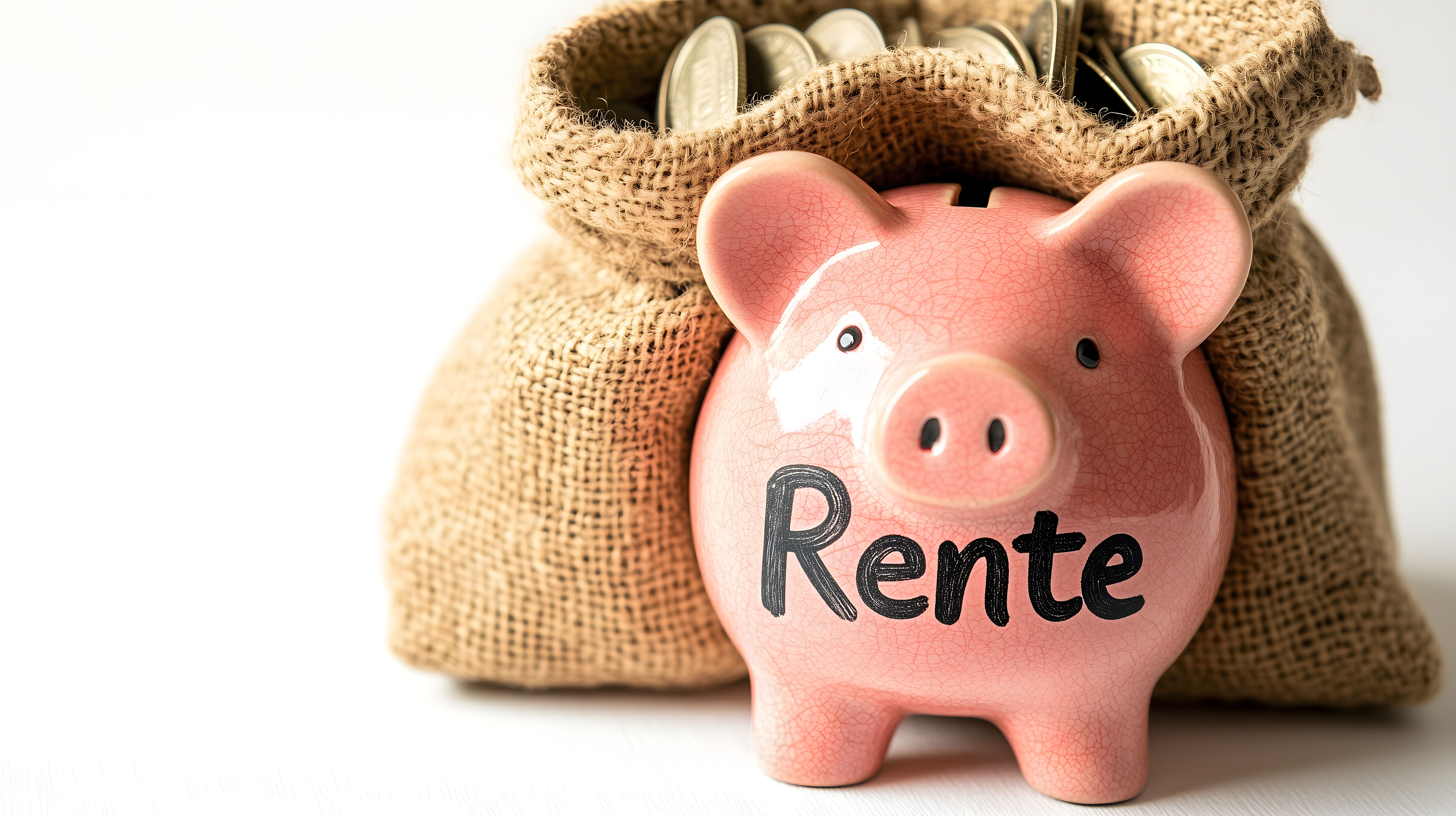 Dieses Foto zeigt ein rosafarbenes Sparschwein mit der Aufschrift 'Rente' auf einem Sack aus Jute oder Leinen. Der Sack sieht gebraucht und abgenutzt aus, was eine rustikale und traditionelle Atmosphäre vermittelt. Dieses Stockfoto eignet sich hervorragend für Beiträge rund um das Thema Altersvorsorge, Rentensystem und finanzielle Unabhängigkeit im Ruhestand. Mit seiner hohen Auflösung und dem Creative-Commons-Lizenzmodell ist es ein praktisches und kostenloses Asset für Blog-Artikel, Newsletter-Layouts oder Social-Media-Posts zu diesen Themen.