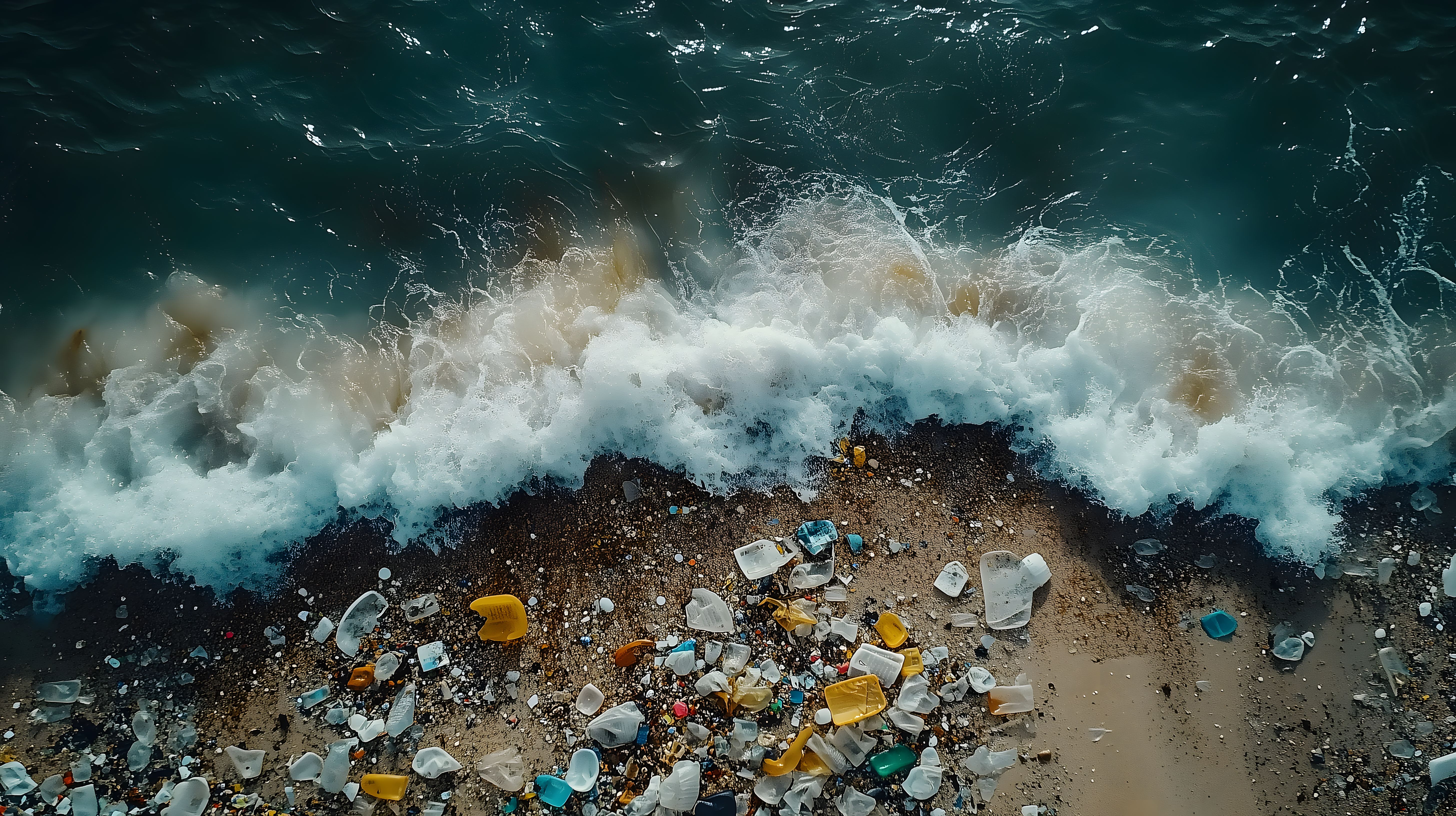 Dieses Foto zeigt die verheerenden Auswirkungen der Umweltverschmutzung durch Plastikabfälle im Meer. Es zeigt eine Brandungswelle, die über einen von Plastik und Müll übersäten Meeresboden bricht. Die verschiedenfarbigen Plastikteile, Verpackungen und sonstigen Abfälle kontrastieren stark mit der natürlichen Umgebung und verdeutlichen das Ausmaß der Umweltzerstörung. Dieses beeindruckende und gleichzeitig beunruhigende Bild ist ein eindringlicher Appell für mehr Umweltbewusstsein und einen nachhaltigen Umgang mit Plastik und Ressourcen.