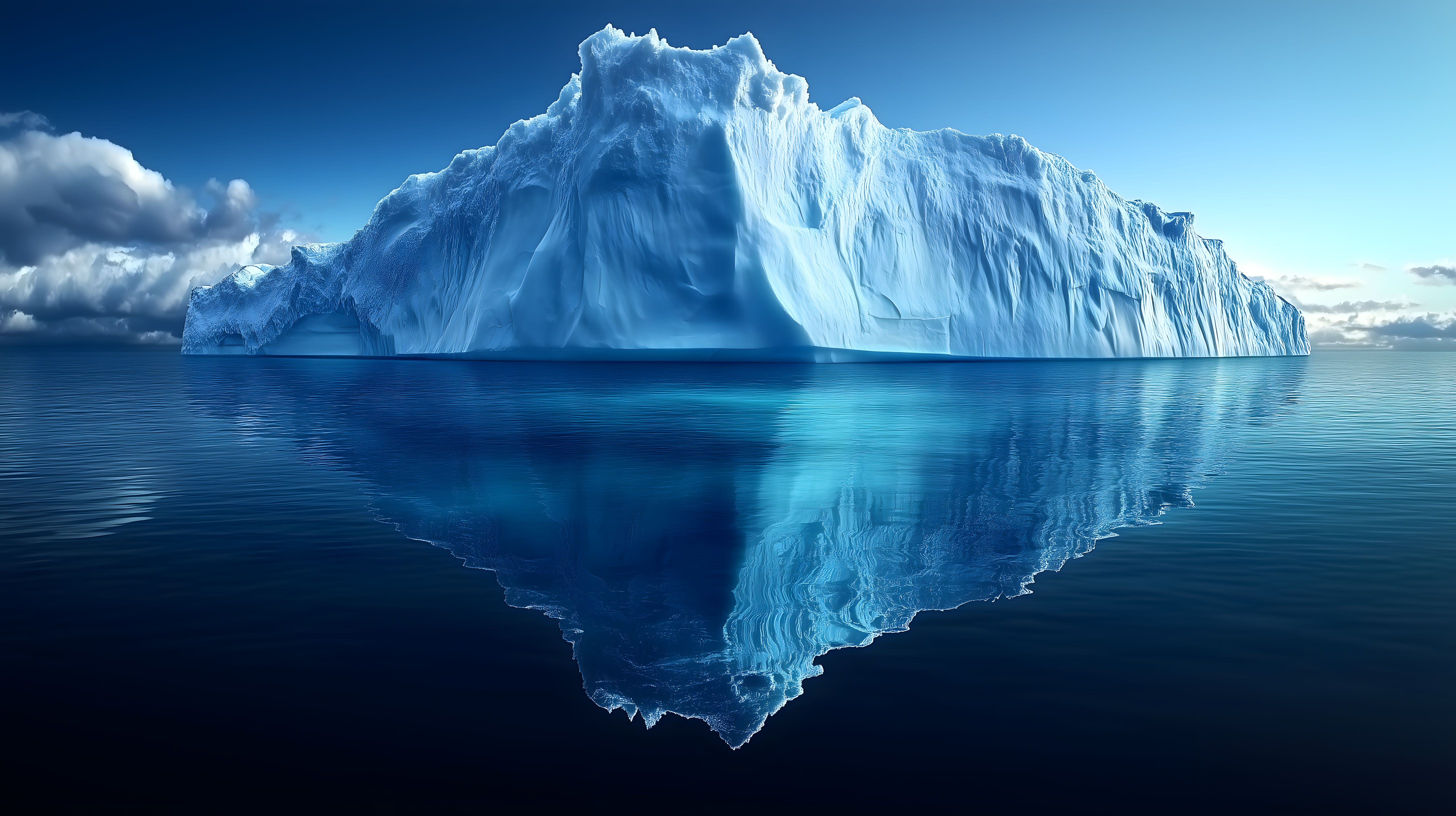 Dieses beeindruckende Foto zeigt einen mächtigen Eisberg, der sich mit seiner kristallklaren Oberfläche majestätisch aus dem tiefblauen Wasser erhebt. Die perfekte Spiegelung erschafft den Eindruck einer unendlichen, azurblauen Welt. Die Größe und Schönheit dieses Naturwunders lassen erahnen, welche Geheimnisse und Gefahren in der Arktis und Antarktis lauern. Dieses hochauflösende Stockfoto eignet sich hervorragend für Hintergrundbilder, Printmedien und digitale Anwendungen wie Blogs, Newsletter oder Social-Media-Beiträge. Es ist unter einer Creative-Commons-Lizenz frei verwendbar.