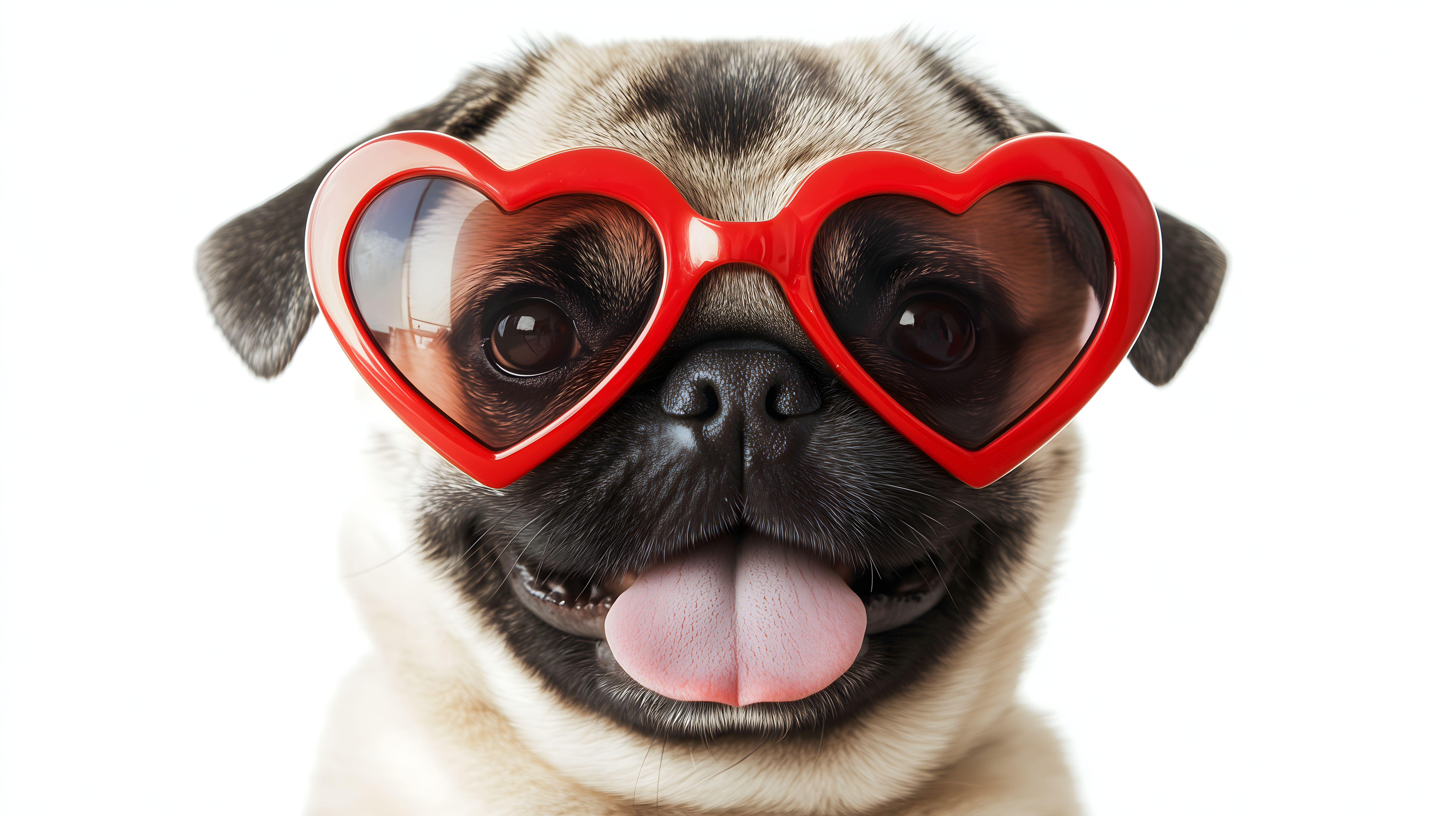 Das Bild zeigt einen niedlichen Mops, der eine rote Herzbrille trägt. Der Hund hat einen verspielten und komischen Gesichtsausdruck, was den Eindruck von Spaß und Fröhlichkeit vermittelt. Die rote Herzbrille und das schwarze Gesicht des Mopses bilden einen reizvollen Kontrast, der das Bild sehr auffällig und einzigartig macht. Dieses kostenloses Stockfoto in hoher Auflösung eignet sich hervorragend für den Einsatz in Blogs, Newslettern, Social-Media-Posts oder Werbematerialien, wo es eine fröhliche und liebenswerte Stimmung erzeugen kann.