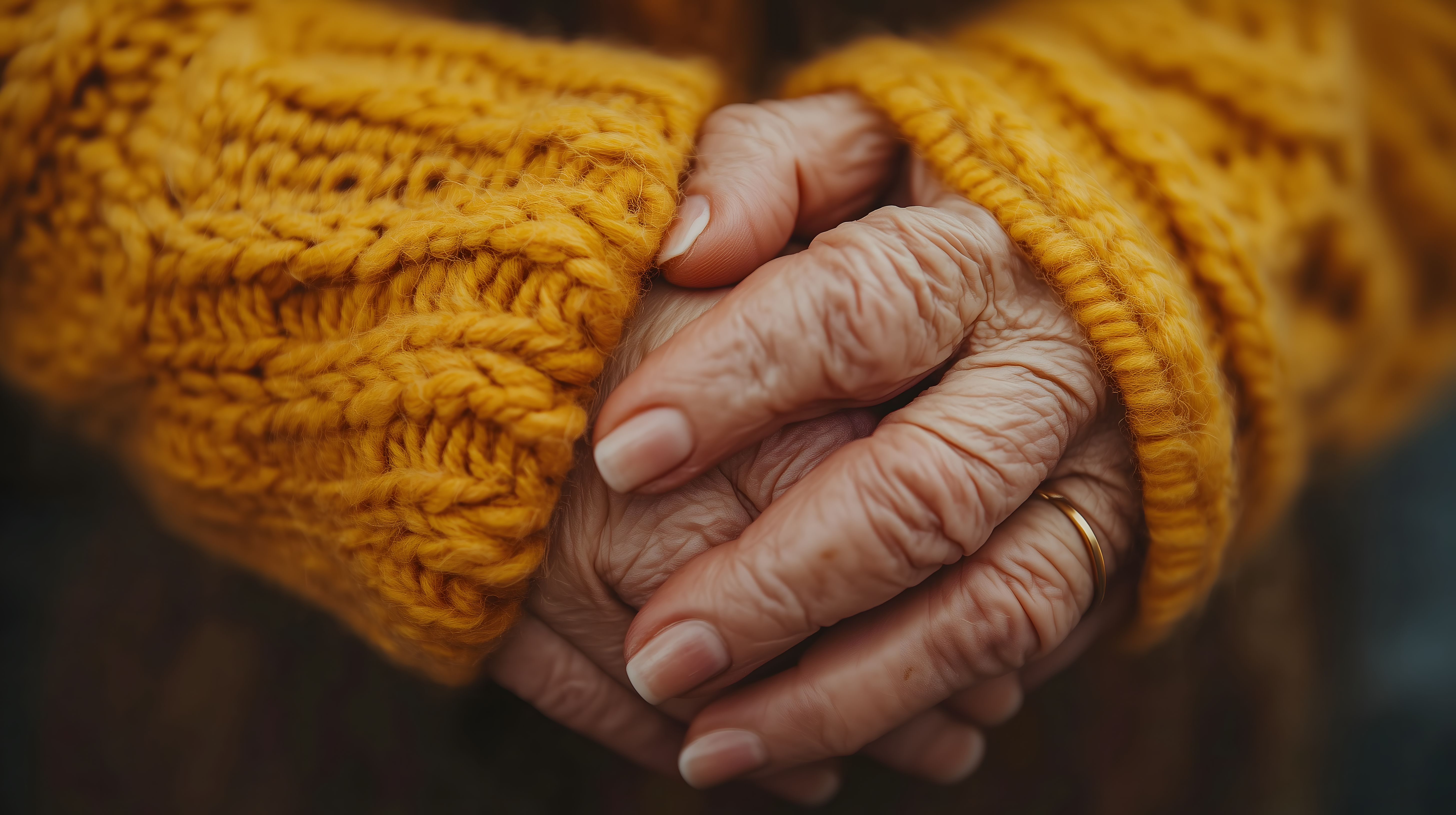 Dieses Foto zeigt die runzeligen Hände eines älteren Menschen, die in einer gelben, handgestrickten Strickjacke eingehüllt sind. Die detailreiche Nahaufnahme lässt die Erfahrung und Weisheit spüren, die sich in den Falten und Narben der Haut widerspiegeln. Das warme Gelb der Strickjacke verleiht der Szene einen beruhigenden, gemütlichen Charakter und symbolisiert die Wärme und Fürsorge, die von dieser Person ausstrahlt. Dieses hochauflösende Stockfoto eignet sich hervorragend für den Einsatz in Blogbeiträgen, Newslettern oder Social-Media-Kanälen, die sich mit Themen wie Alter, Erfahrung, Generationen oder Menschlichkeit befassen. Es steht unter einer Creative-Commons-Lizenz zur kostenlosen Nutzung zur Verfügung.