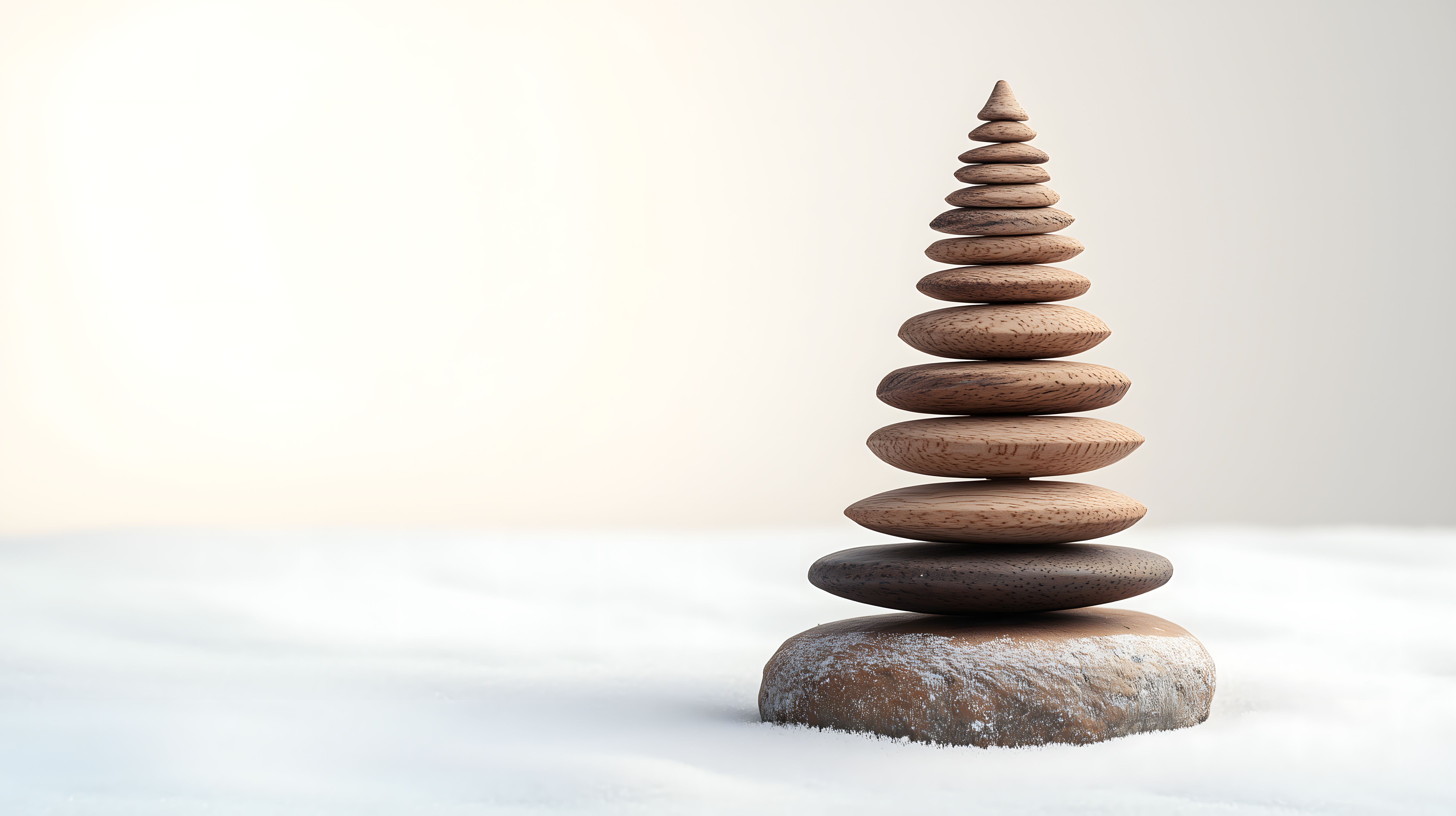 Das Bild zeigt eine minimalistische Holzpyramide, die in einer winterlichen Landschaft mit Schnee und leicht bewölktem Himmel platziert ist. Die Pyramide besteht aus aufeinander gestapelten Holzscheiben in verschiedenen Größen und erzeugt so eine ruhige, harmonische Komposition. Das Bild vermittelt Schlichtheit, Klarheit und Konzentration auf das Wesentliche. Es eignet sich hervorragend als Hintergrundbild für Websites, Blogs, Newsletter oder Social-Media-Beiträge, die eine natürliche, skandinavische Ästhetik vermitteln wollen. Dieses hochauflösende, kostenlose Stockfoto unter Creative-Commons-Lizenz kann frei für redaktionelle und kommerzielle Zwecke genutzt werden.