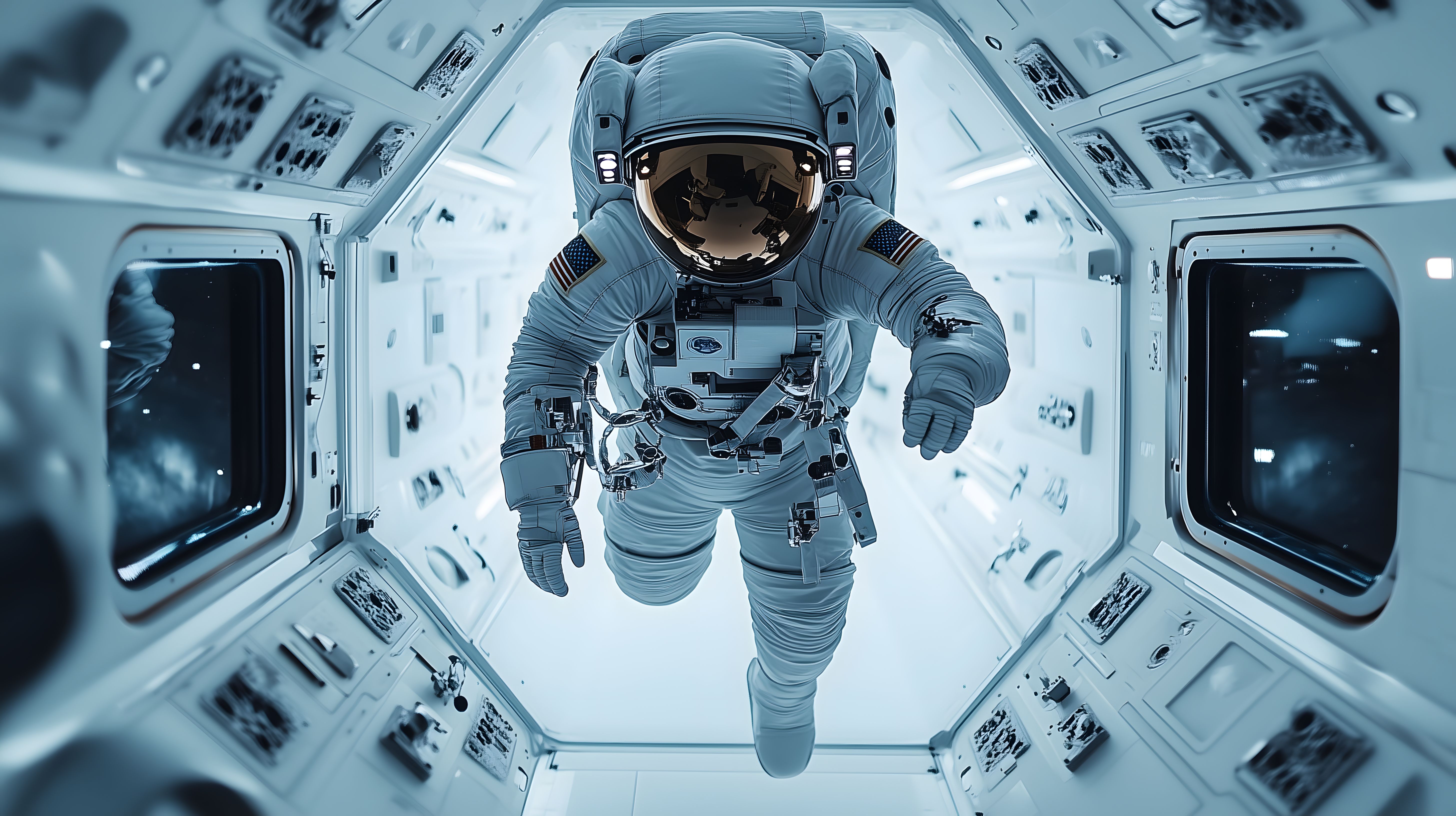Das Bild zeigt einen Astronauten, der in einer modernen Raumstation schwebt. Der Astronaut ist komplett in einen weißen Raumanzug gekleidet und trägt einen Helm mit einer spiegelnden Scheibe. Er schwebt inmitten verschiedener Konsolen, Bildschirme und Fenster, die den hochmodernen und technischen Charakter der Raumstation betonen. Die Perspektive, die den Betrachter direkt in das Raumschiff einbindet, vermittelt ein Gefühl von Offenheit und Weite. Dieses Stockfoto eignet sich hervorragend für Illustrationen in Artikeln über Raumfahrt, Wissenschaft und Technologie. Mit seiner hohen Auflösung und der kostenlosen Nutzung unter Creative-Commons-Lizenz ist es eine tolle Ressource für Blogger, Newsletter-Ersteller oder Social-Media-Manager auf der Suche nach ansprechenden Weltraum-Motiven.