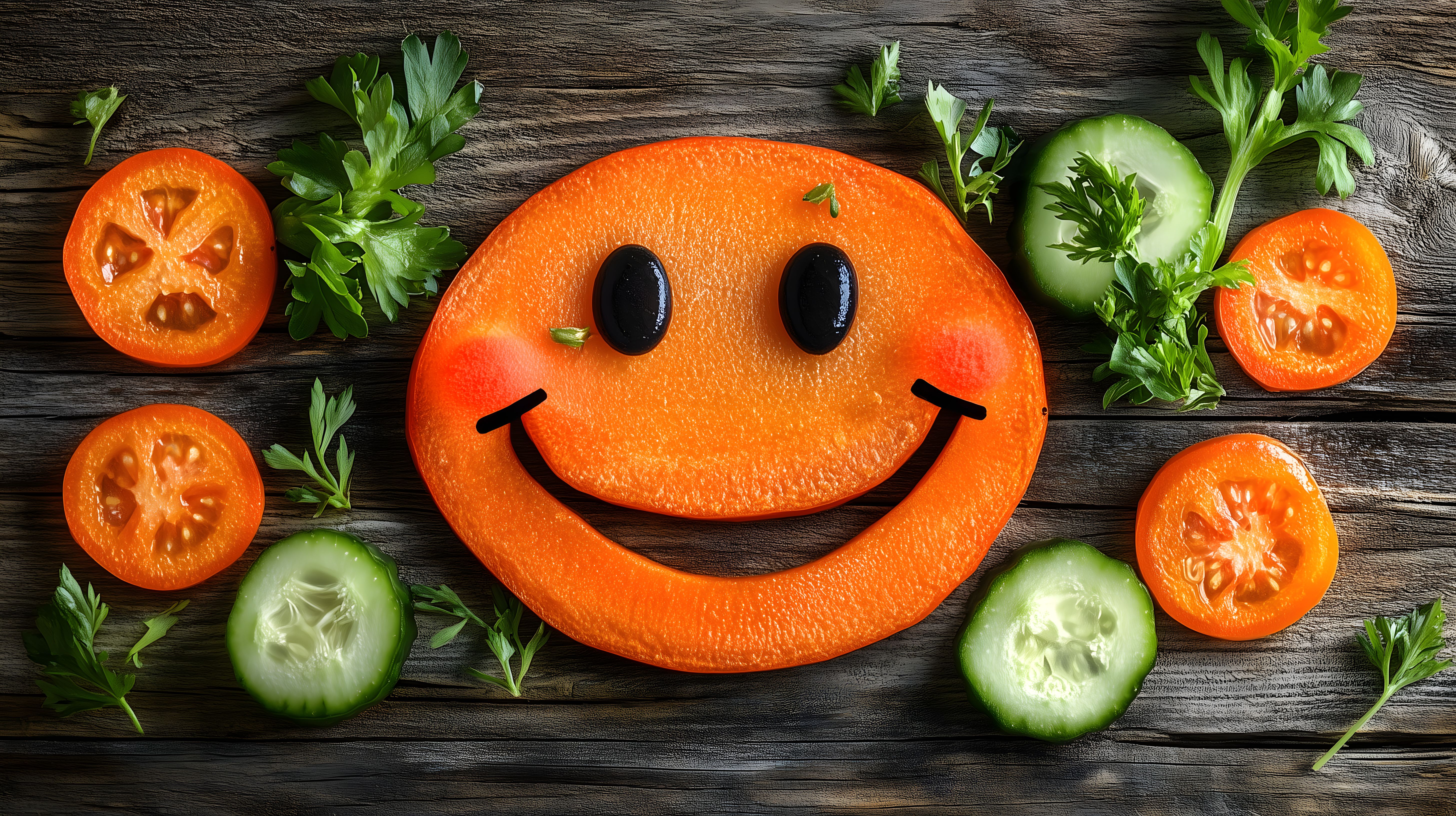 Dieses stimmungsvolle Foto zeigt eine lächelnde Tomaten-Komposition auf einem rustikalen Holzhintergrund. Die frischen, knackigen Tomaten und Gurken sind liebevoll angeordnet und stellen ein köstliches, gesundes Motiv dar. Die kräftigen Farben und der natürliche Kontrast zum dunklen Holz schaffen eine appetitanregende und einladende Atmosphäre. Dieses Bild eignet sich hervorragend als kostenfreies Stockfoto für Artikel zu gesunder Ernährung, Foodblog-Beiträge oder Werbematerial im Naturkost-Bereich. Mit einer hohen Auflösung und Creative-Commons-Lizenz ist es vielseitig einsetzbar.