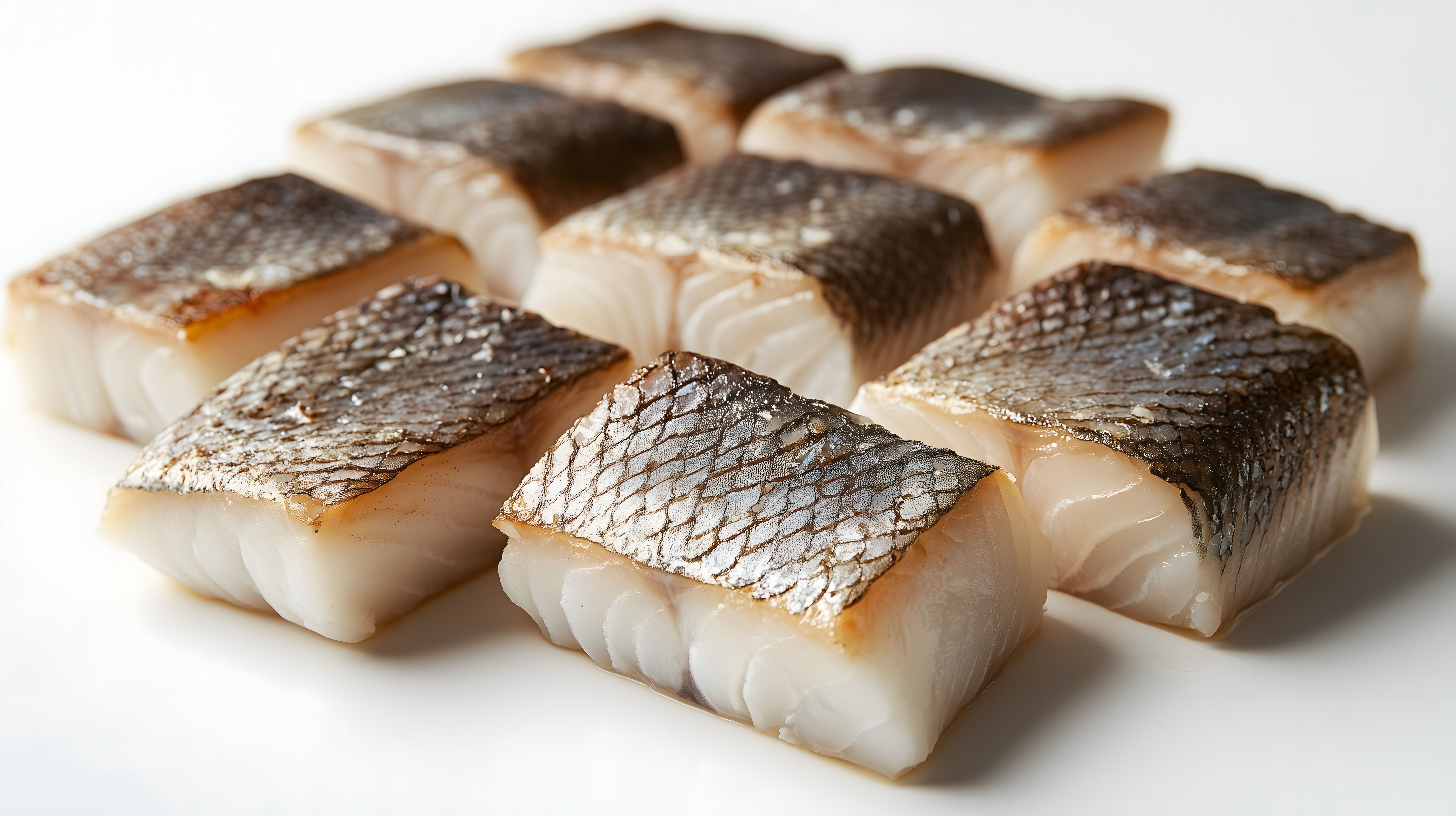 Dieses Foto zeigt mehrere Stücke frisch gegarten Lachsfischs auf einem hellen, neutralen Hintergrund. Die Lachsfilets haben eine kräftige, orangerote Farbe und eine charakteristische Fischstruktur mit feinen Schuppen. Die Anordnung der Fischstücke ist symmetrisch und übersichtlich, wodurch der Fokus klar auf dem Hauptmotiv liegt. Das Bild vermittelt den Eindruck von Frische, Hochwertige Qualität und Kulinarik. Es eignet sich hervorragend als Stockfoto für Beiträge zu Themen wie gesunde Ernährung, Fischrezepte, asiatische Küche oder als Eyecatcher in Werbematerialien. Das Foto ist in hoher Auflösung verfügbar und steht unter einer Creative-Commons-Lizenz zur freien Nutzung bereit.
