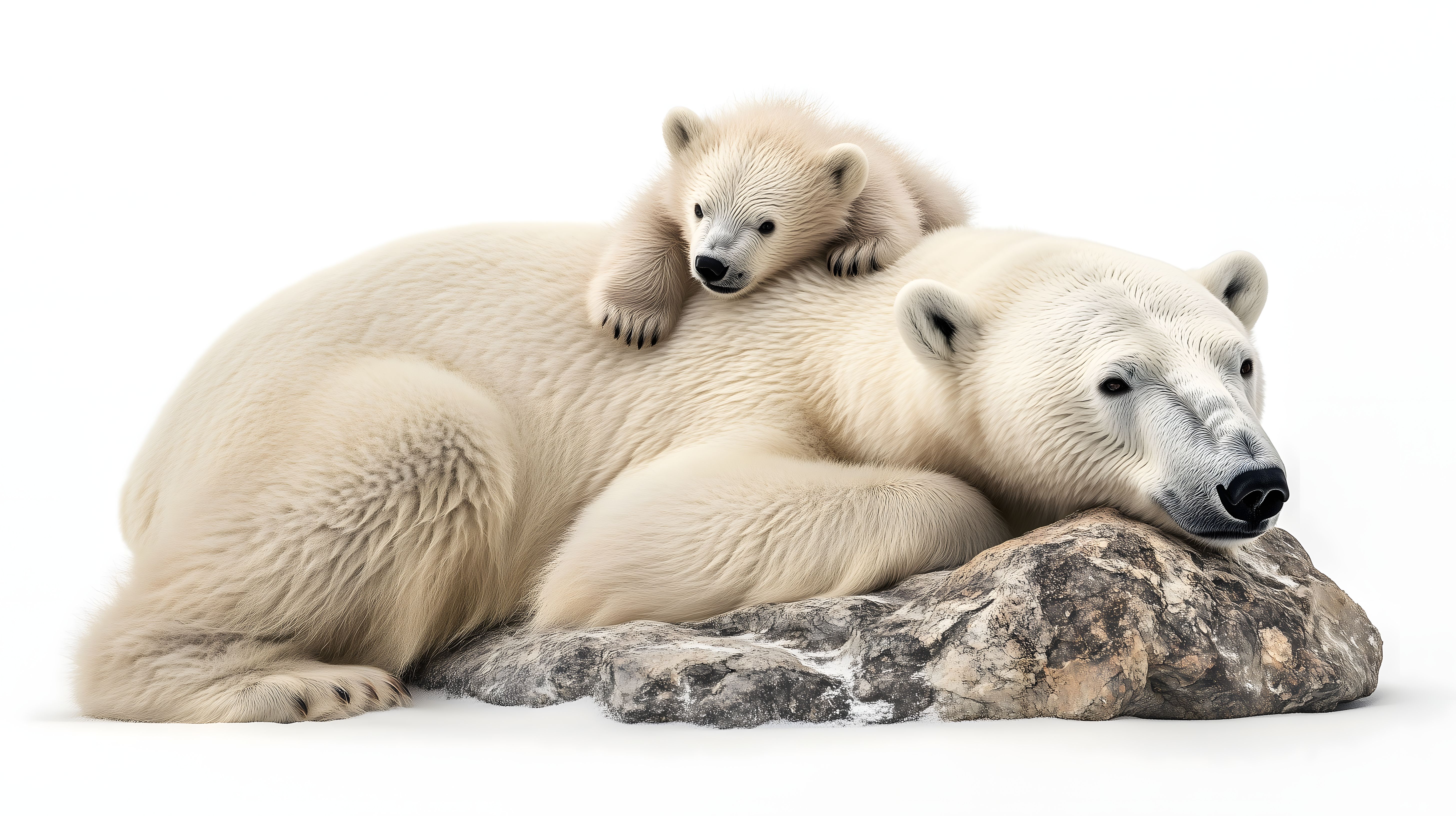 Das Foto zeigt eine fürsorgliche Eisbärenmutter, die mit ihrem kleinen Jungen auf einem Felsen ruht. Die beiden Eisbären haben ein weiches, dichtes Fell und liegen ruhig nebeneinander, als würden sie sich gegenseitig schützen und wärmen. Die Szenerie vermittelt Geborgenheit, Ruhe und die enge Verbindung zwischen Mutter und Kind in der arktischen Natur. Dieses hochwertige Stockfoto eignet sich hervorragend für die Verwendung in Blogs, Newslettern, Social-Media-Kanälen oder Werbekampagnen zu Themen wie Tierwelt, Naturschutz oder Familienbilder. Das Foto ist kostenfrei, in hoher Auflösung und unter der Creative-Commons-Lizenz verfügbar.