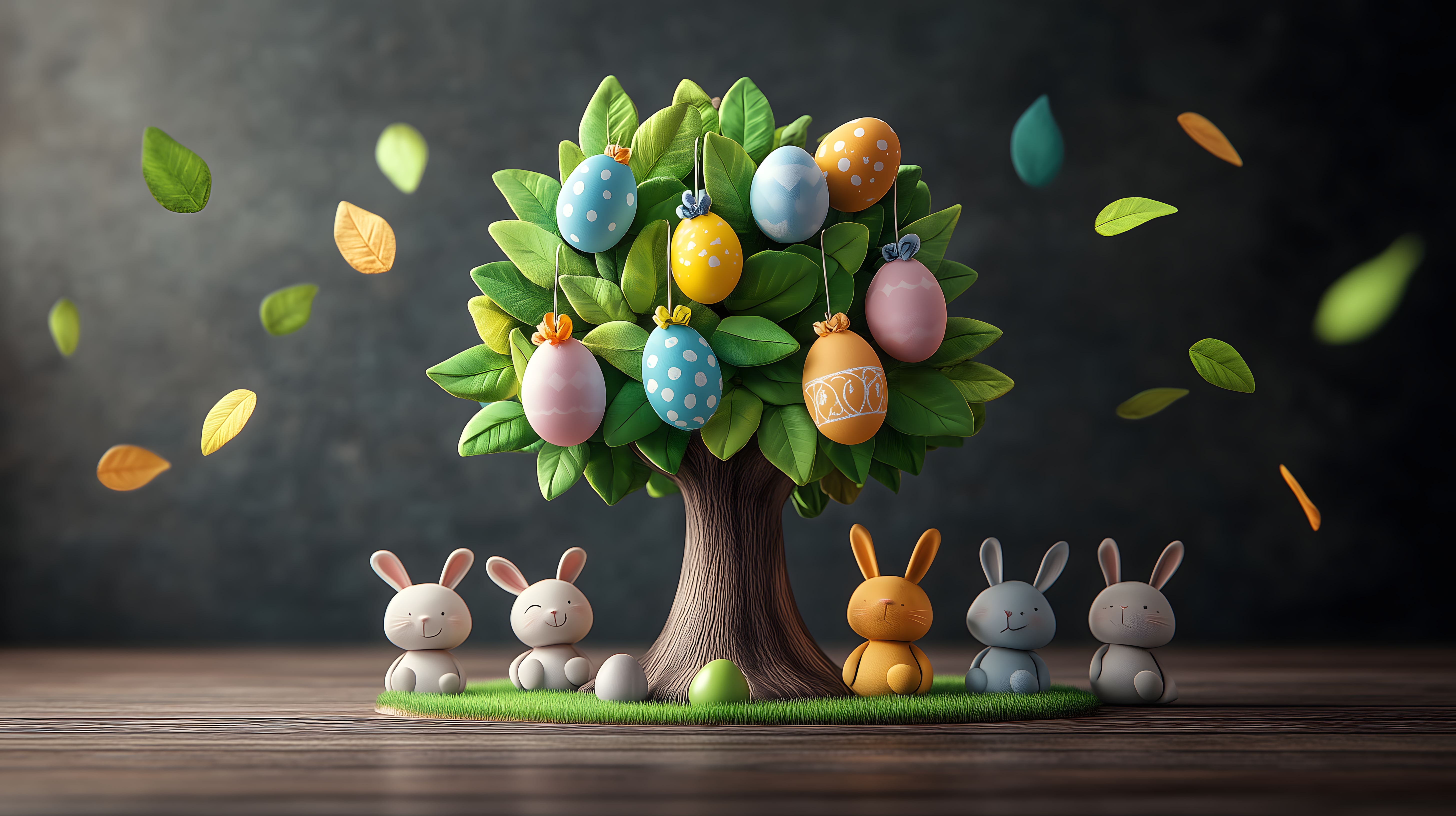 Dieses liebenswürdige Osterbild zeigt einen schönen Osterstrauß mit bunten bemalten Eiern und kleinen Hasendekorationen auf einem Holztisch. Die Komposition ist farbenfroh und detailreich, mit frischen grünen Blättern als Hintergrund. Die Perspektive unterstreicht die Natürlichkeit und Leichtigkeit des Arrangements. Dieses Stockfoto eignet sich perfekt für Oster-Blogbeiträge, Newsletter-Designs, Social-Media-Posts und andere saisonale Werbematerialien. Es ist in hoher Auflösung und unter Creative-Commons-Lizenz frei verwendbar.
