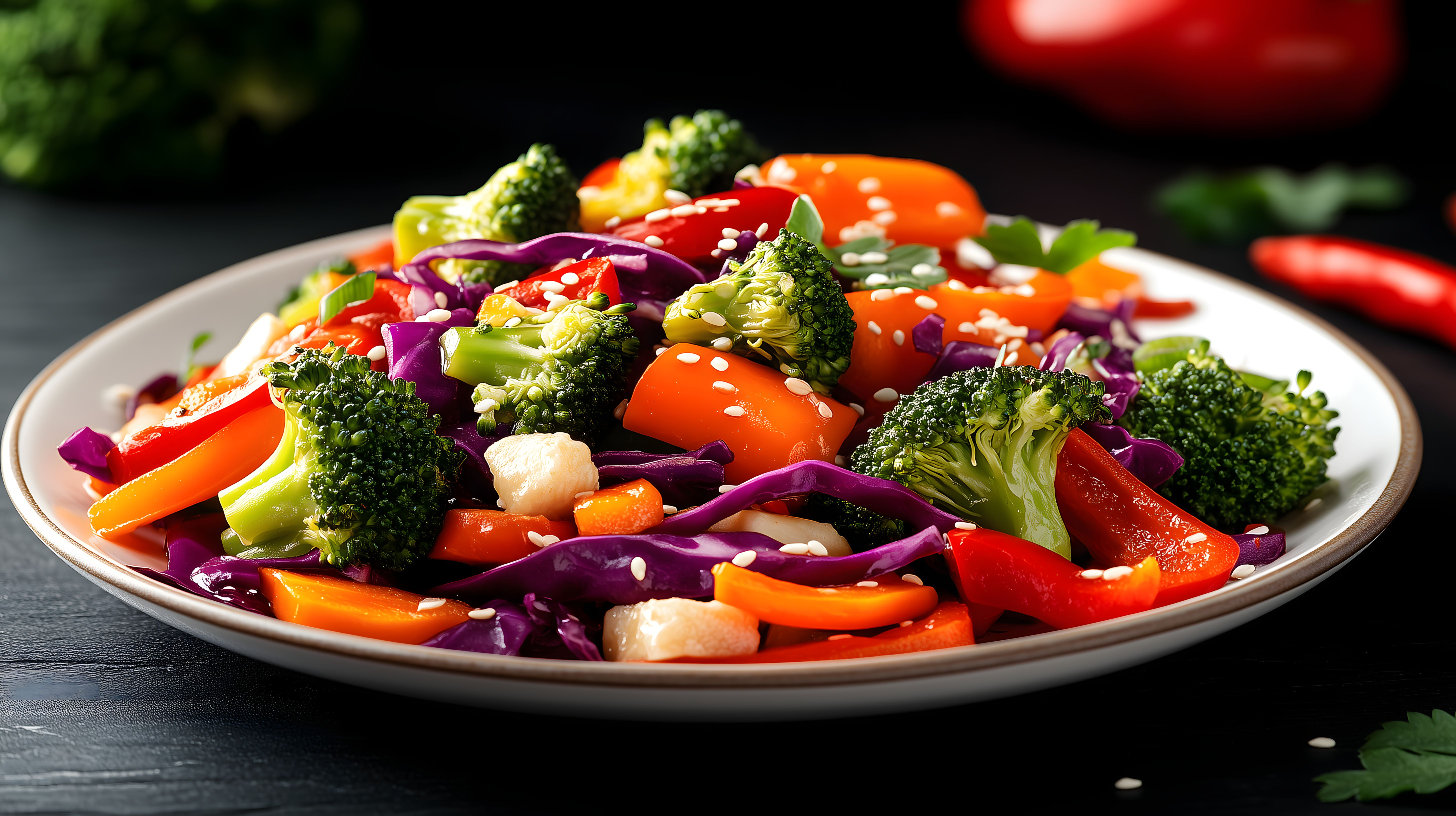 Dieses hochwertige Stockfoto zeigt eine bunte Gemüsepfanne mit frischen Zutaten wie Paprika, Brokkoli und weiteren Gemüsesorten. Das Gericht ist in einer rustikalen Schüssel angerichtet und vor einem dunklen Hintergrund platziert, was den natürlichen und appetitlichen Eindruck des Motivs verstärkt. Mit seiner lebendigen Farbgebung und appetitlichen Optik eignet sich das Bild ideal für die Verwendung in Blogs, Newslettern, Social-Media-Kanälen oder Werbematerialien rund um gesunde Ernährung, vegetarische und vegane Küche sowie Foodfotografie. Das Foto ist in hoher Auflösung verfügbar und steht unter einer Creative-Commons-Lizenz zur kostenfreien Nutzung zur Verfügung.
