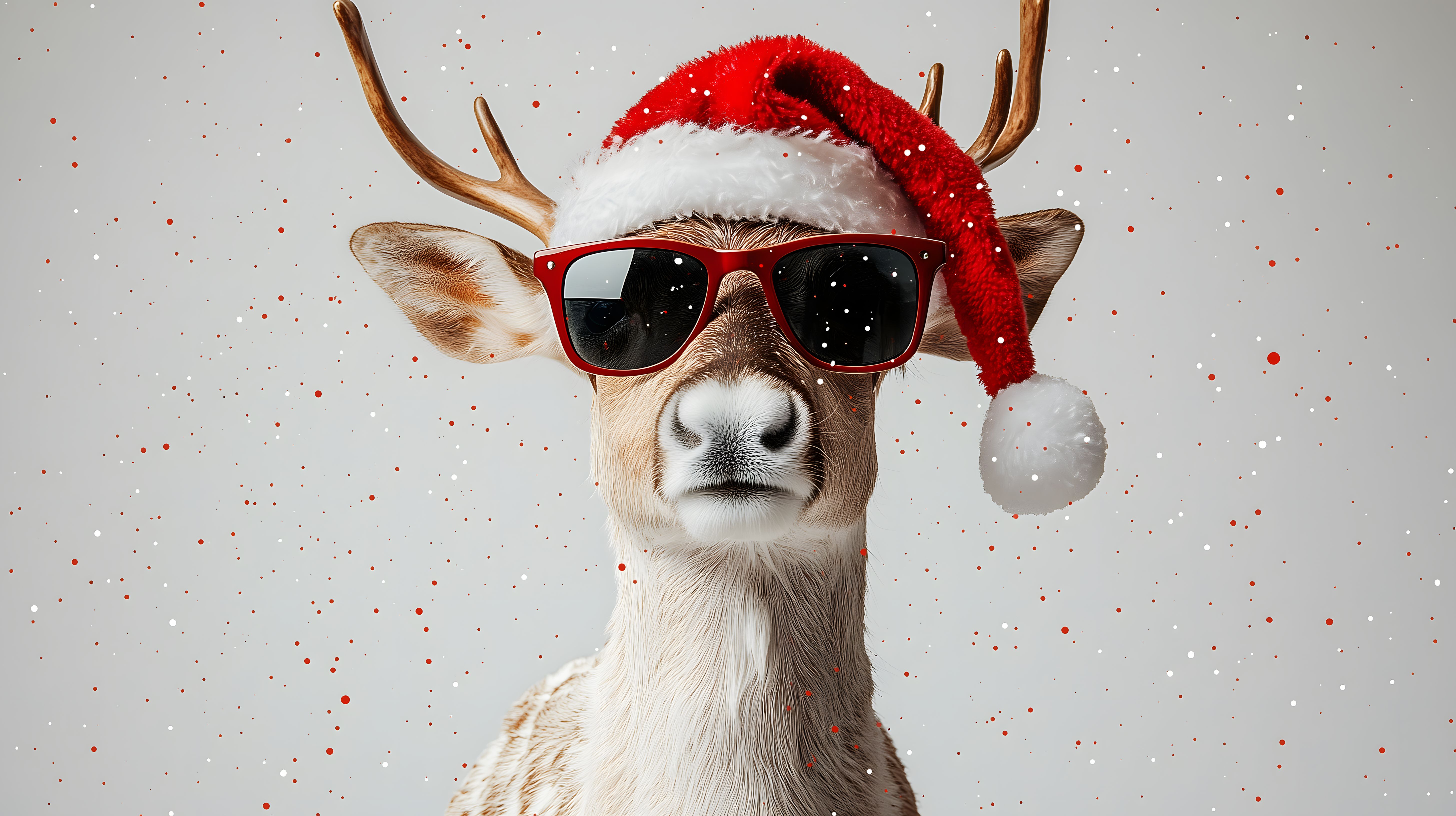 Dieses fröhliche Rentier-Foto ist ein perfekter Hingucker für Ihre Weihnachts- und Winterkampagnen. Das Bild zeigt ein Rentier, das eine rote Weihnachtsmütze und eine coole Sonnenbrille trägt, vor einem verschwommenen, schneebedeckten Hintergrund. Die Komposition ist klar und fokussiert, die Farben sind stimmungsvoll. Dieses kostenlose Stockfoto in hoher Auflösung ist unter einer Creative-Commons-Lizenz verfügbar und kann daher problemlos in Ihren Blog, Newsletter oder Social-Media-Beiträgen verwendet werden. Es verleiht Ihren Weihnachtsgrüßen einen humorvollen, modernen Touch.