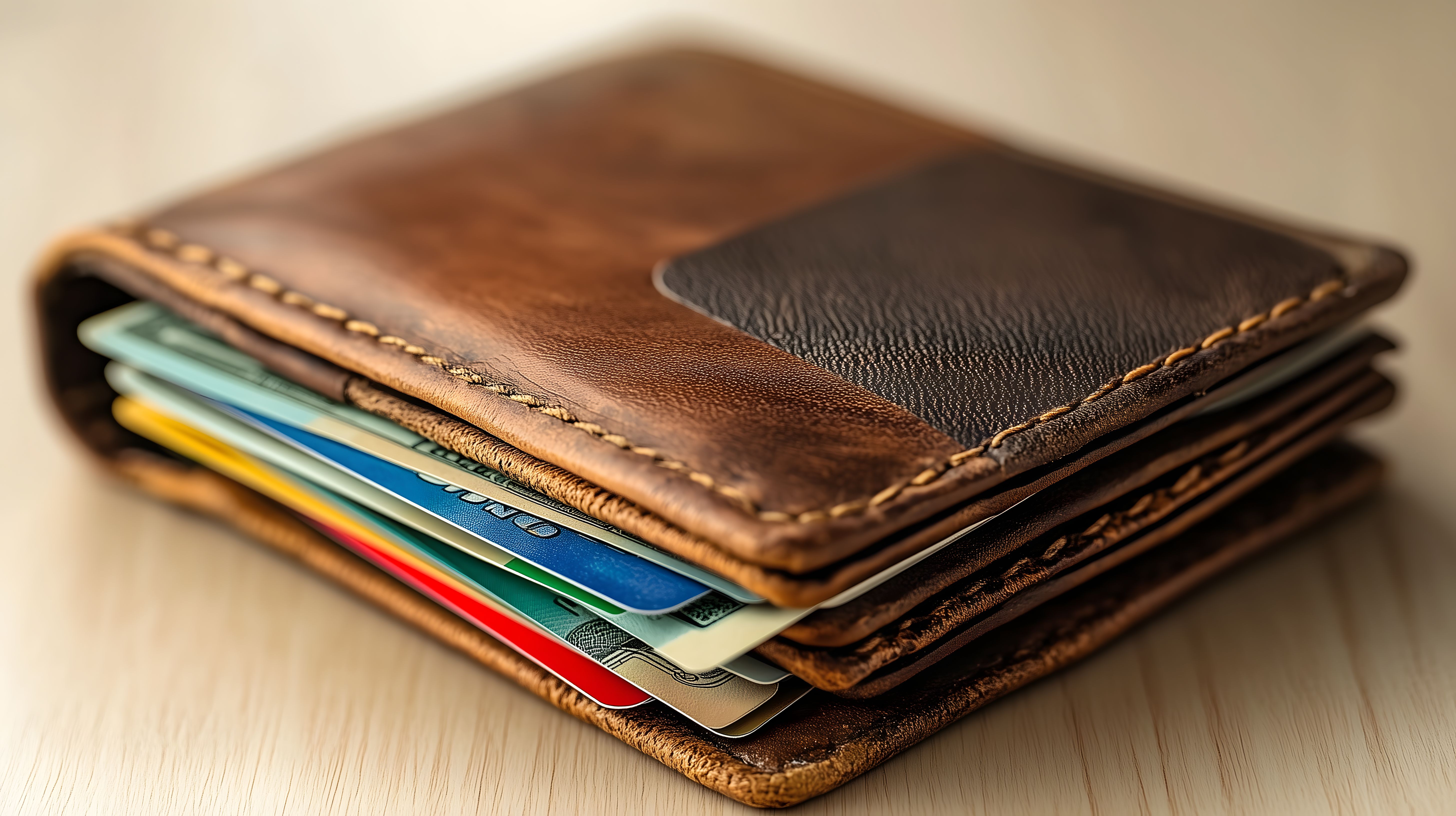 Das Bild zeigt einen gepflegten Ledergeldbeutel, der auf einem hellen Holztisch liegt. Der Geldbeutel ist aus braunem Leder gefertigt und enthält mehrere Kreditkarten, die sichtbar sind. Die Perspektive ist nah und ermöglicht einen detaillierten Blick auf die Textur und Verarbeitung des Portemonnaies. Dieses Foto eignet sich hervorragend für die Verwendung in Blogbeiträgen, Newslettern, Social-Media-Kanälen oder Werbekampagnen rund um Themen wie Finanzen, Einkaufen, Mode oder Lifestyle. Das hochwertige Stockfoto ist in hoher Auflösung und unter einer Creative-Commons-Lizenz frei verwendbar.