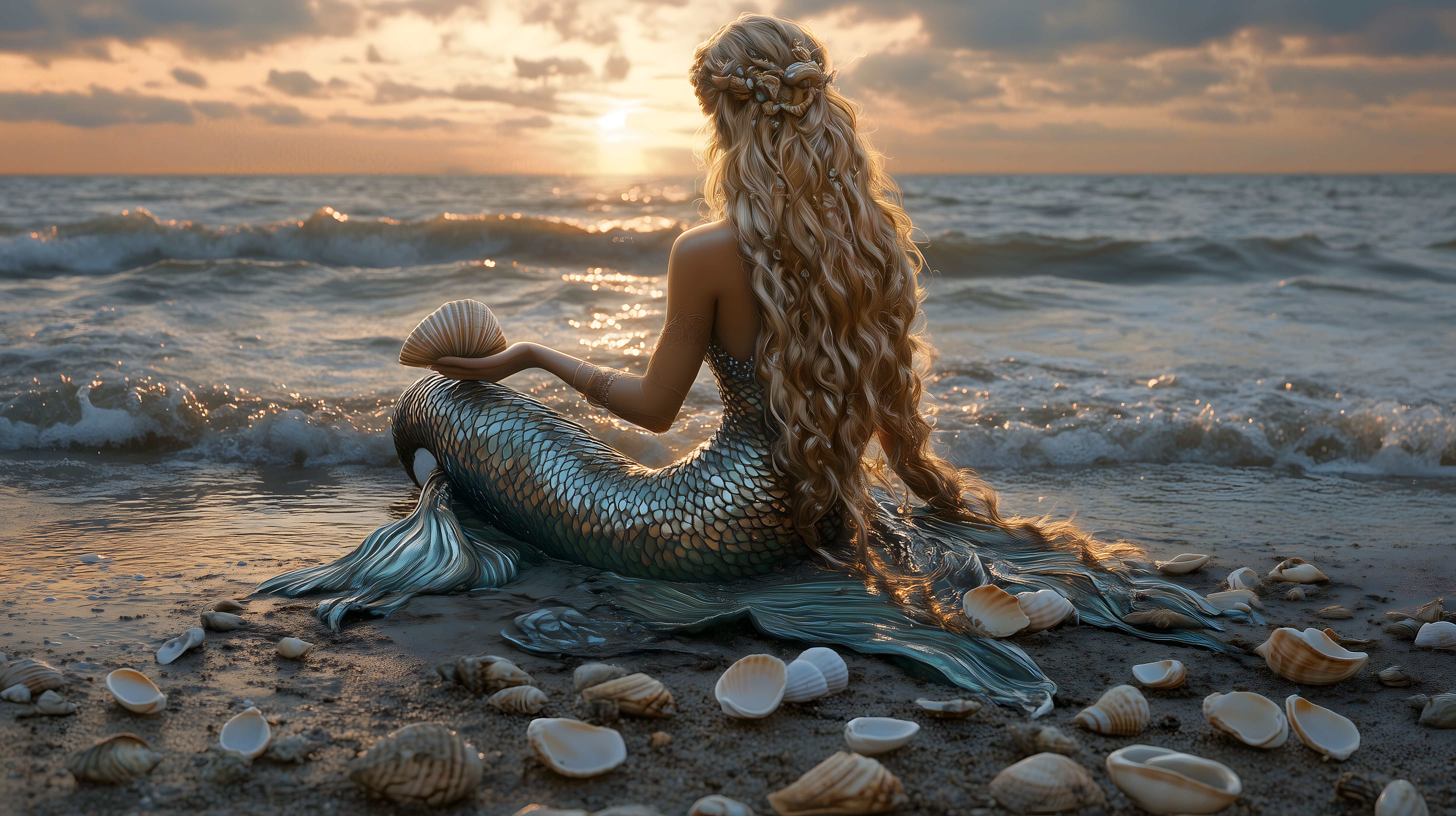Dieses märchenhafte Stockfoto zeigt eine schöne Meerjungfrau, die am Strand sitzt und den Sonnenuntergang genießt. Mit ihren langen, goldenen Haaren und den schuppenartigen Details ihres Körpers vermittelt sie eine fantastische, mystische Stimmung. Das Bild eignet sich hervorragend für Blogs, Newsletter, Social-Media-Beiträge oder Werbematerial in den Bereichen Fantasy, Märchen, Kreativität und Naturelemente. Es ist in hoher Auflösung verfügbar und steht unter einer Creative-Commons-Lizenz zur Verfügung.