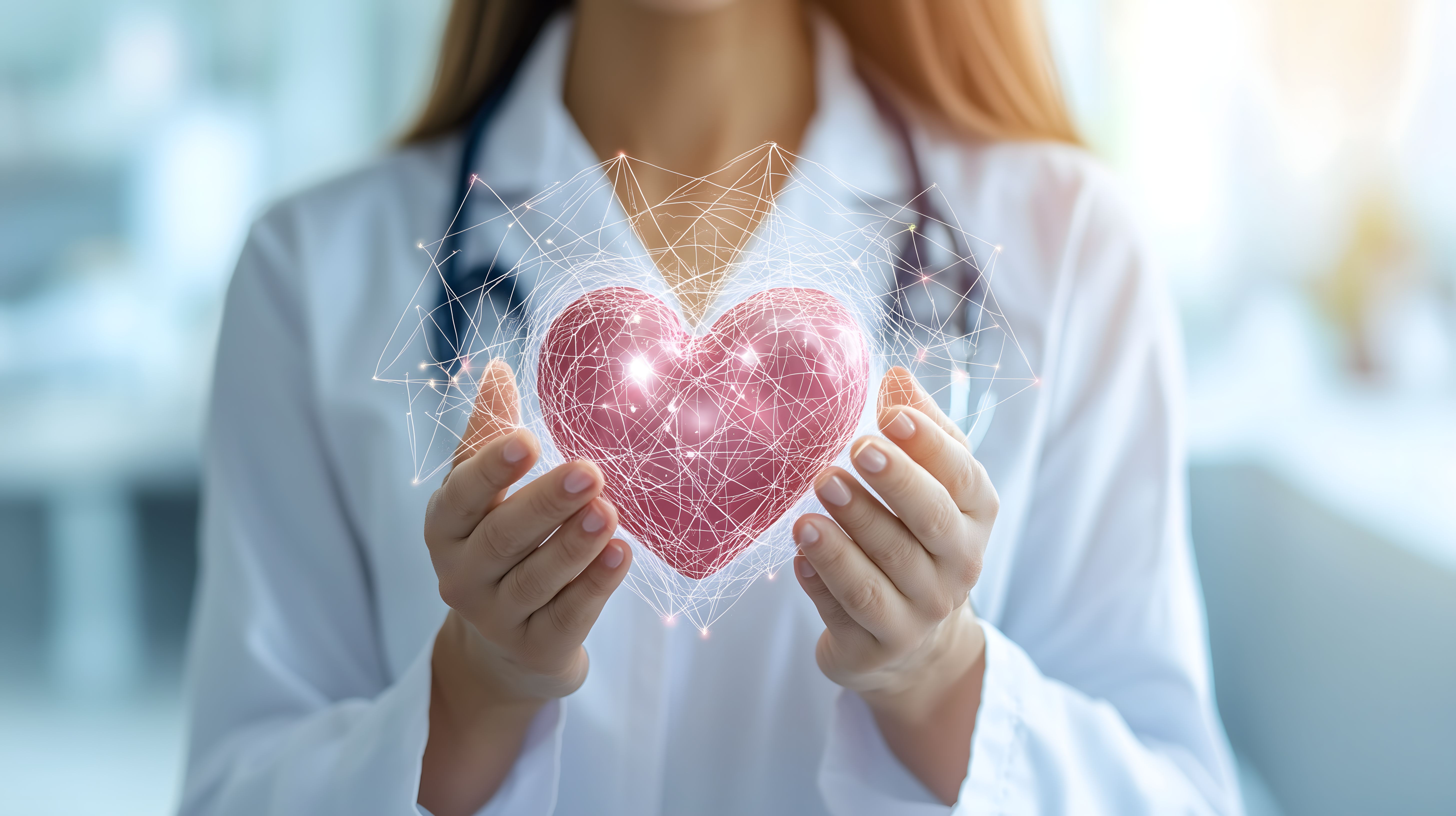 Das Bild zeigt eine Ärztin, die ein digitales Herzmodell in ihren Händen hält. Das transparente, leuchtend rote Herz ist von einem virtuellen Netzwerk aus feinen Linien und Punkten umgeben, die eine moderne, technologische Ästhetik vermitteln. Die Ärztin in weißem Ärztekittel steht in einem hellen, modernen Umfeld, das den medizinisch-wissenschaftlichen Kontext unterstreicht. Das Bild vermittelt den Eindruck von Innovation, Fortschritt und Zukunft in der Medizin. Das Foto eignet sich hervorragend als kostenloses, hochwertiges Stockfoto für Blogs, Newsletter, Social-Media-Beiträge oder Werbeanzeigen im Gesundheits- und Medizinbereich. Die Creative-Commons-Lizenz ermöglicht eine vielseitige Nutzung des Bildes.