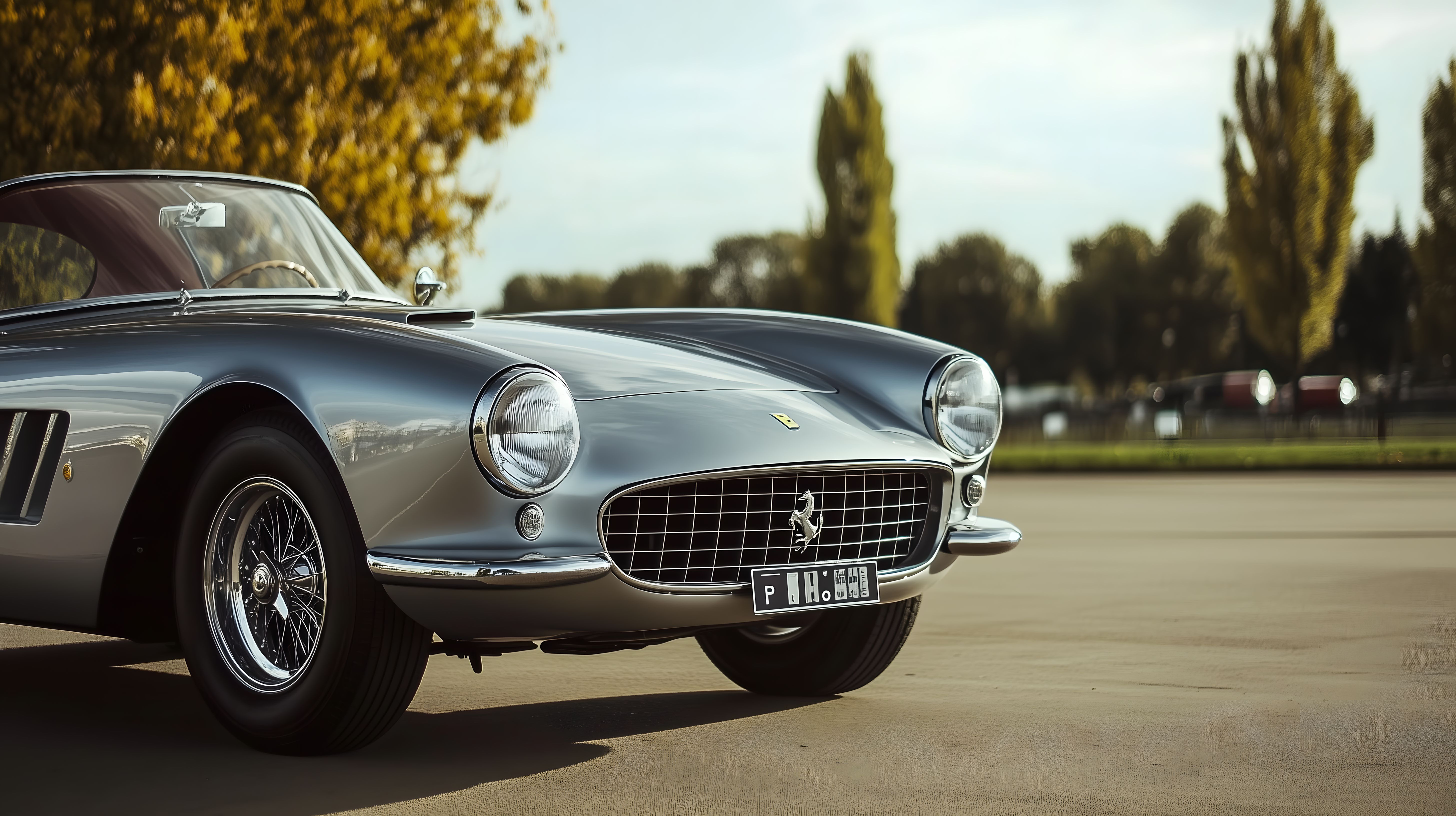 Dieses beeindruckende Foto zeigt einen eleganten, silbernen Oldtimer-Ferrari vor einer malerischen, herbstlichen Kulisse. Der klassische Sportwagen mit seinen charakteristischen Linien und der typischen Ferrari-Frontpartie ist perfekt in Szene gesetzt. Im Hintergrund erstrecken sich Bäume in warmen Herbstfarben, die dem Bild eine besonders stimmungsvolle Atmosphäre verleihen. Dieses hochauflösende Stockfoto eignet sich hervorragend für den Einsatz in Blogs, Newslettern, Social-Media-Beiträgen oder hochwertigen Werbematerialien. Es steht unter der Creative-Commons-Lizenz zur freien Nutzung zur Verfügung.