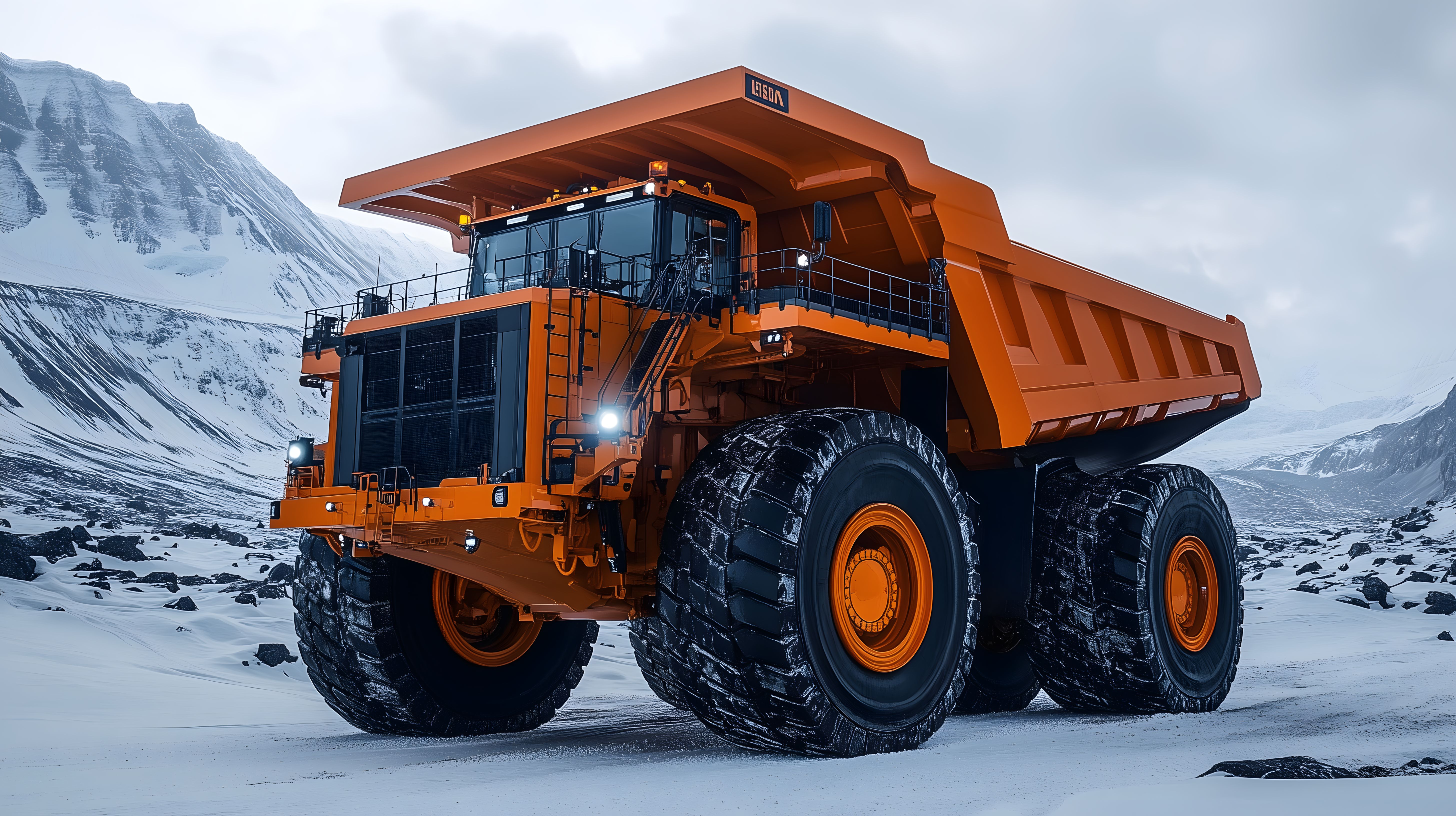 Dieses beeindruckende Foto zeigt einen riesigen, orangefarbenen Bergbau-Muldenkipper, der sich in einer faszinierenden Winterlandschaft befindet. Das mächtige Fahrzeug ist mit riesigen Reifen ausgestattet und scheint perfekt für den schweren Transport von Gütern und Mineralien in unwegsamem Gelände geeignet zu sein. Die karge, schneebedeckte Umgebung mit den imposanten Felsen im Hintergrund verleiht der Szene eine beeindruckende Kulisse. Dieses Stockfoto eignet sich hervorragend für den Einsatz in Blogbeiträgen, Newslettern oder Social-Media-Kanälen, die sich mit Themen wie Bergbau, Industrie, Logistik oder Maschinentechnik befassen. Es ist in hoher Auflösung verfügbar und unter einer Creative-Commons-Lizenz kostenfrei nutzbar.