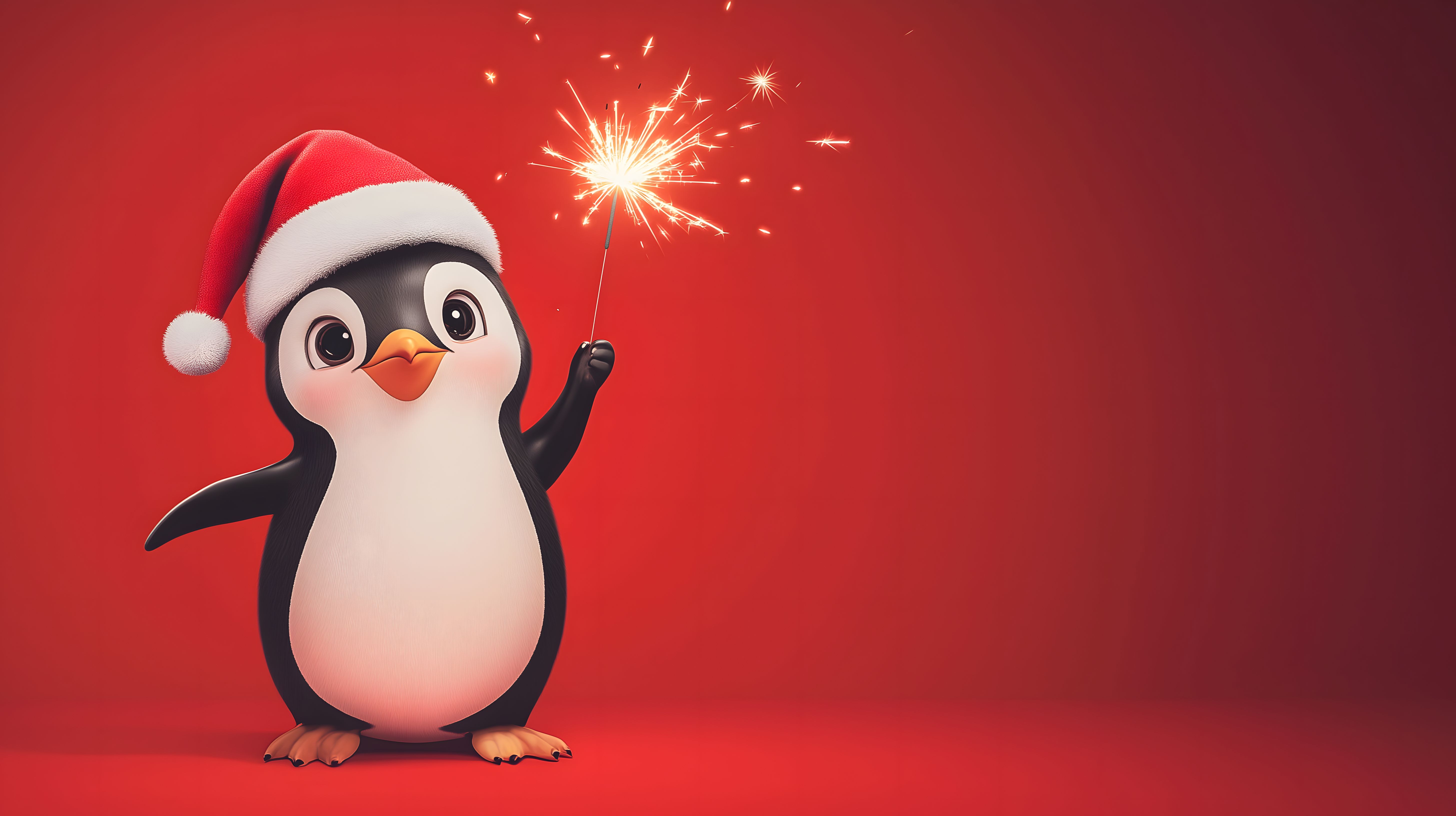Dieses Bild zeigt einen niedlichen, cartoon-artigen Pinguin mit einer roten Weihnachtsmann-Mütze, der eine Wunderkerze in seiner Hand hält. Der Pinguin steht vor einem leuchtend roten Hintergrund, vor dem sich verschiedenfarbige Funken und Feuerwerkskörper entfalten. Das Bild versprüht eine festliche, fröhliche Stimmung und wäre ideal für die Verwendung in Weihnachts- oder Neujahrs-Designs, wie Postkarten, Grußkarten, Social-Media-Beiträgen oder Werbekampagnen. Das hochauflösende, kostenlose Stockfoto steht unter einer Creative-Commons-Lizenz zur Verfügung.