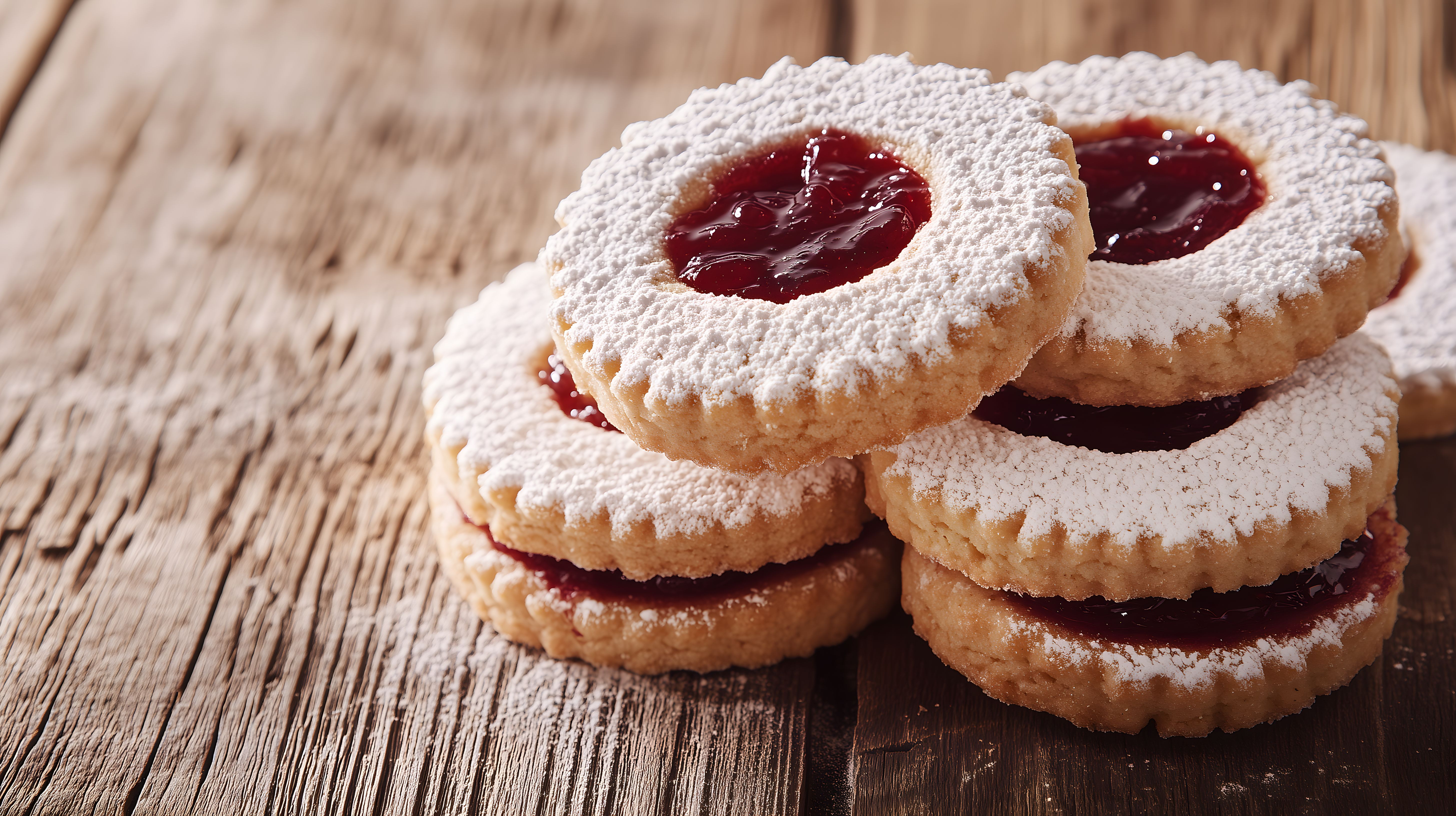 Dieses Foto zeigt eine Reihe von traditionellen Linzer Plätzchen, die auf einem rustikalen Holztisch arrangiert sind. Die runden Kekse sind mit einer roten Marmeladefüllung versehen und mit Puderzucker bestäubt, was ihnen ein feierliches und appetitliches Aussehen verleiht. Die warmen Farbtöne und die natürliche Textur des Holzes im Hintergrund schaffen eine gemütliche und gemütliche Atmosphäre. Dieses hochwertige Stockfoto eignet sich perfekt für die Verwendung in Blogs, Newslettern, Social-Media-Beiträgen oder Werbematerialien, die ein traditionelles, handwerkliches oder kulinarisches Thema vermitteln möchten. Die Datei ist in hoher Auflösung und steht unter einer Creative-Commons-Lizenz zur freien Verwendung zur Verfügung.