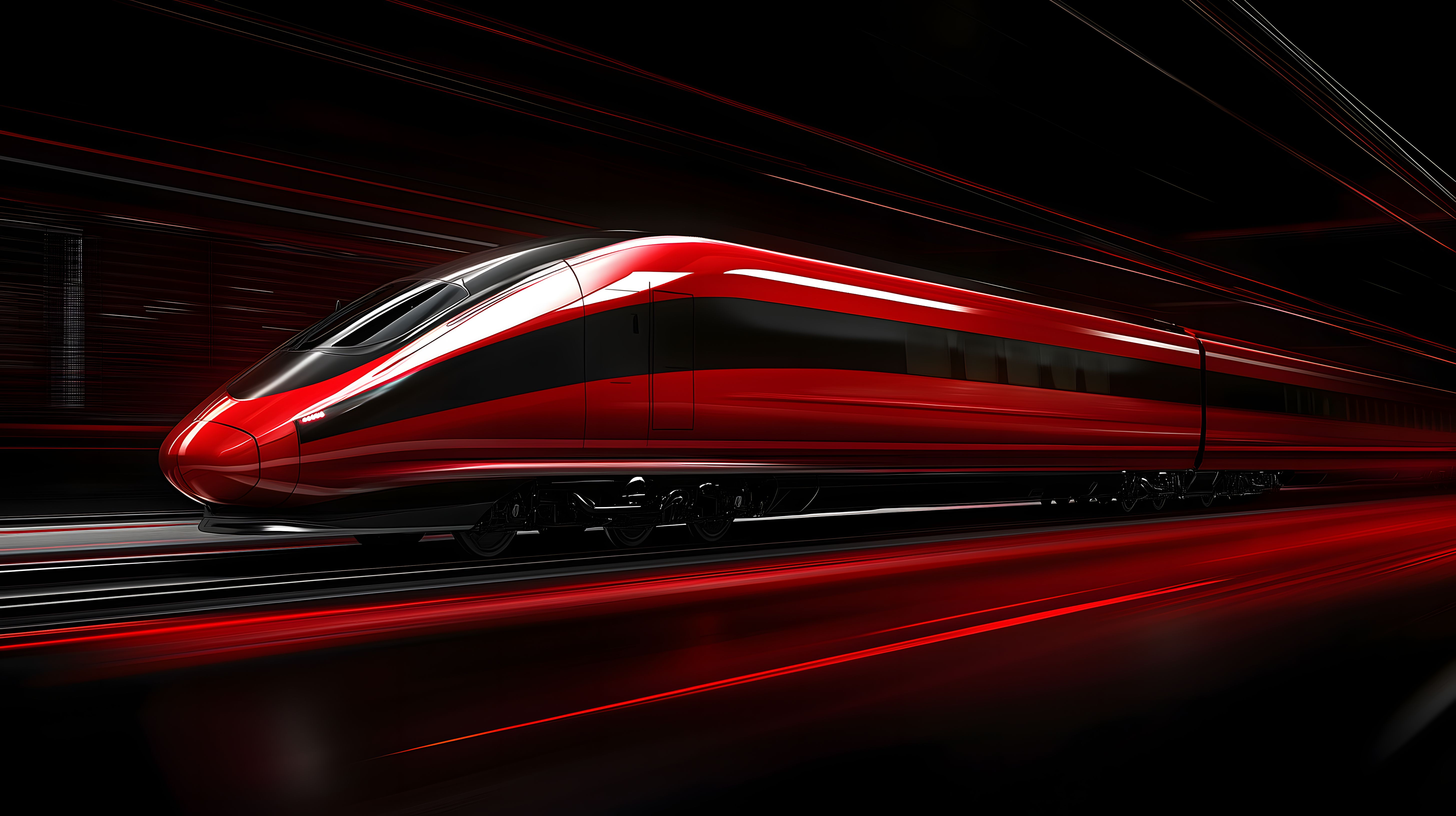Das Bild zeigt einen beeindruckenden Hochgeschwindigkeitszug in modernem, aerodynamischem Design. Der Zug ist in einem kräftigen Rot gehalten, das durch die dunkle Umgebung besonders hervorsticht. Die futuristische Beleuchtung und die scharfen Linien des Zuges verleihen ihm ein dynamisches und technologisch fortschrittliches Aussehen. Dieses Stockfoto eignet sich hervorragend für Beiträge zu Themen wie Mobilität, Zukunftstechnologien, Infrastruktur oder Reisen. Das hochauflösende Bild ist kostenlos unter Creative-Commons-Lizenz verfügbar und kann in verschiedenen Kontexten, wie Blogbeiträgen, Newslettern oder sozialen Medien, eingesetzt werden.