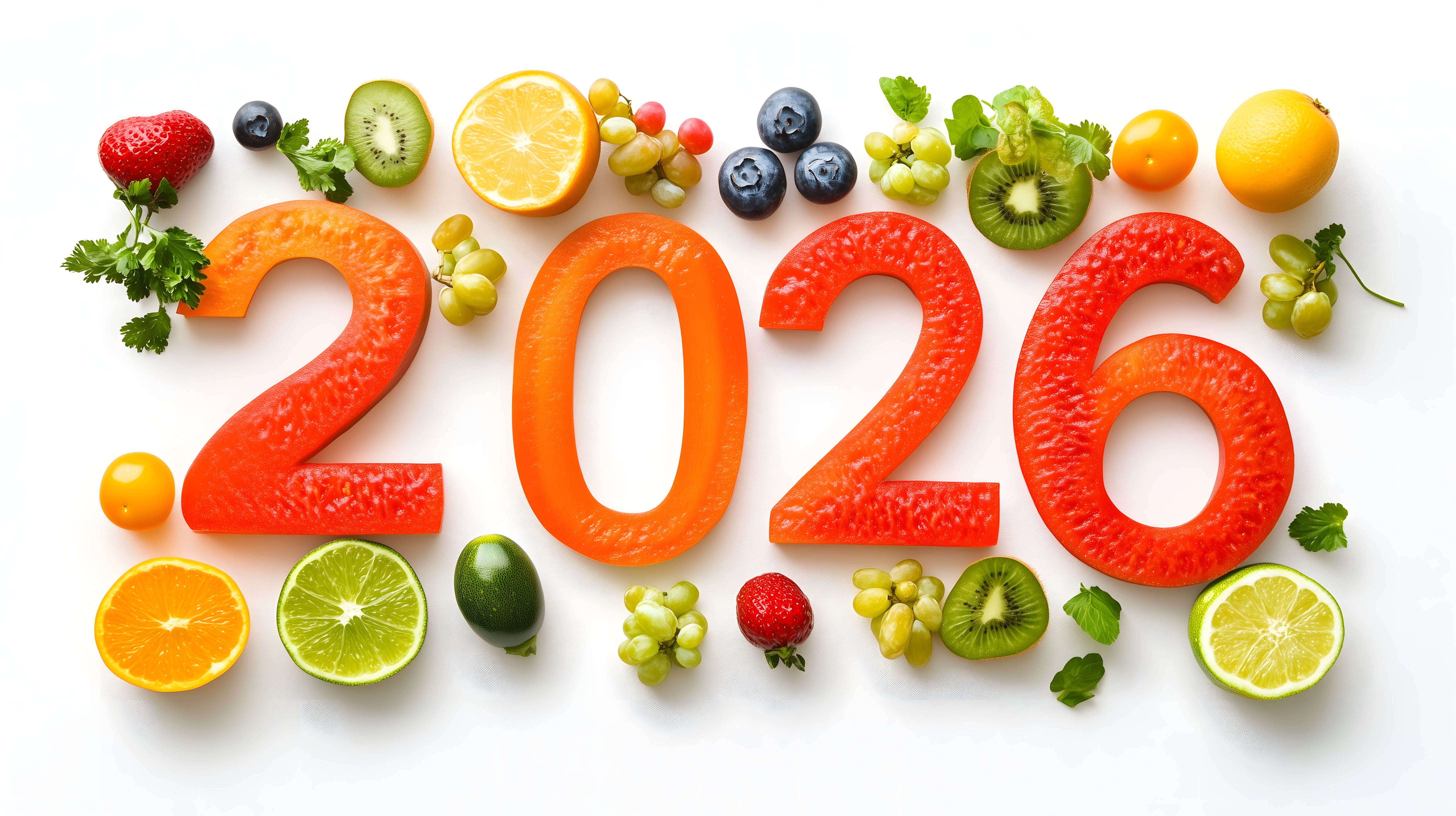 Dieses frisch zusammengestellte Obst-Stillleben in Form der Zahl 2026 ist ein perfektes Sujet für Neujahrs-Dekorationen, Werbe-Grafiken oder ansprechende Fotos für Blogs, Newsletter und Social-Media-Kanäle. Die farbenfrohe Anordnung der saisonalen Früchte wie Erdbeeren, Blaubeeren, Orange, Kiwi, Zitrone und Trauben vor weißem Hintergrund strahlt Vitalität und Frische aus. Dieses hochauflösende, kostenlose Stockfoto unter Creative-Commons-Lizenz kann vielfältig eingesetzt werden - ob für Werbemittel, Titelseiten oder als dekoratives Element.