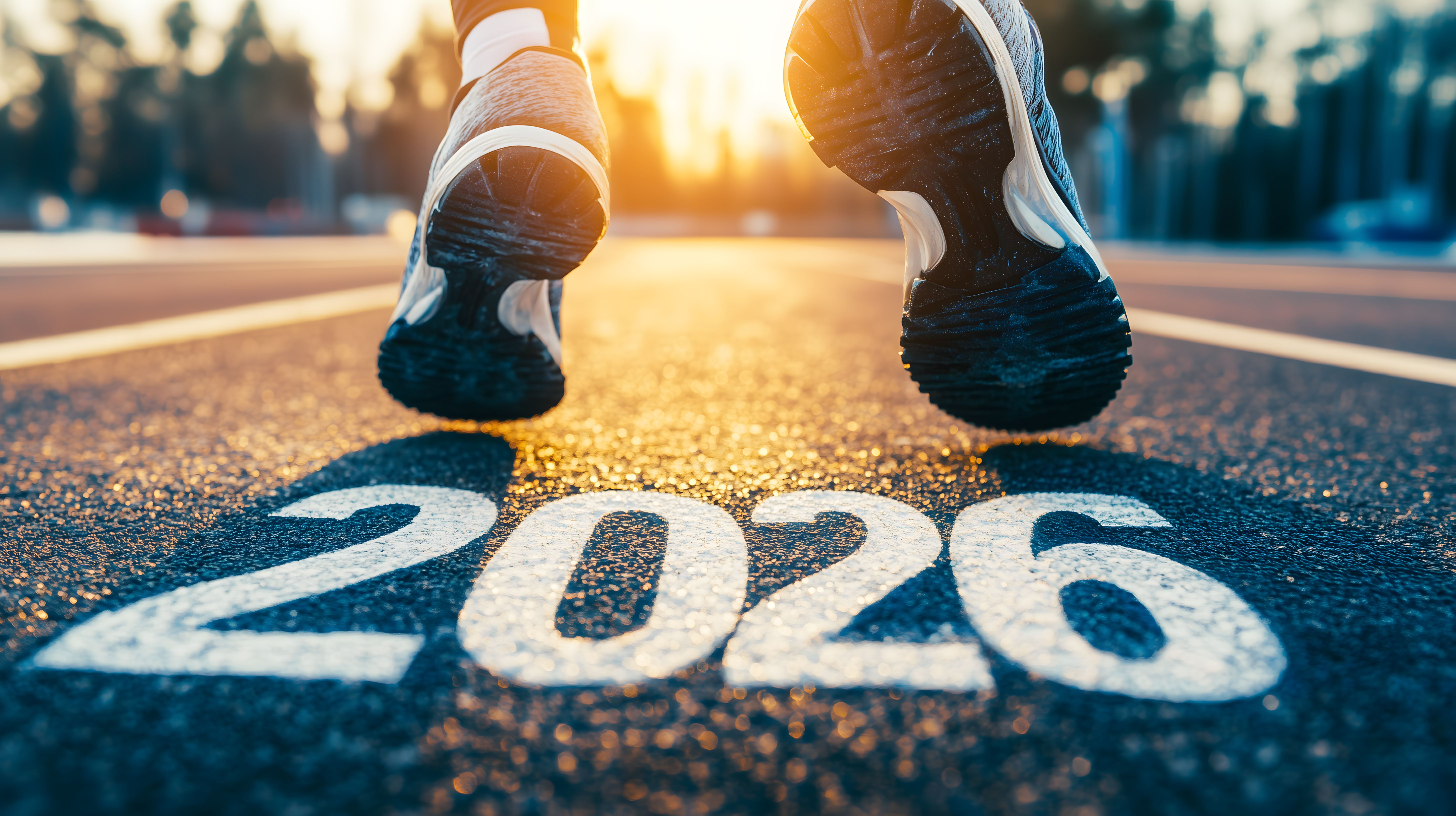 Das Bild zeigt einen Läufer, der auf einer sonnendurchfluteten Laufstrecke in Richtung Jahr 2026 startet. Die Sonne geht strahlend am Horizont auf und wirft lange Schatten auf den Asphalt. Der Läufer trägt Sportkleidung und Laufschuhe und scheint voller Energie und Tatendrang in die Zukunft zu blicken. Das Foto vermittelt ein Gefühl von Aufbruch, Freiheit und Möglichkeiten. Es eignet sich hervorragend als kostenloses Stockfoto für Blogs, Newsletter, Social-Media-Beiträge und Werbung rund um Themen wie Neuanfang, Fitness, Sport und Motivation. Das hochaufgelöste Bild steht unter einer Creative-Commons-Lizenz zur Verfügung.