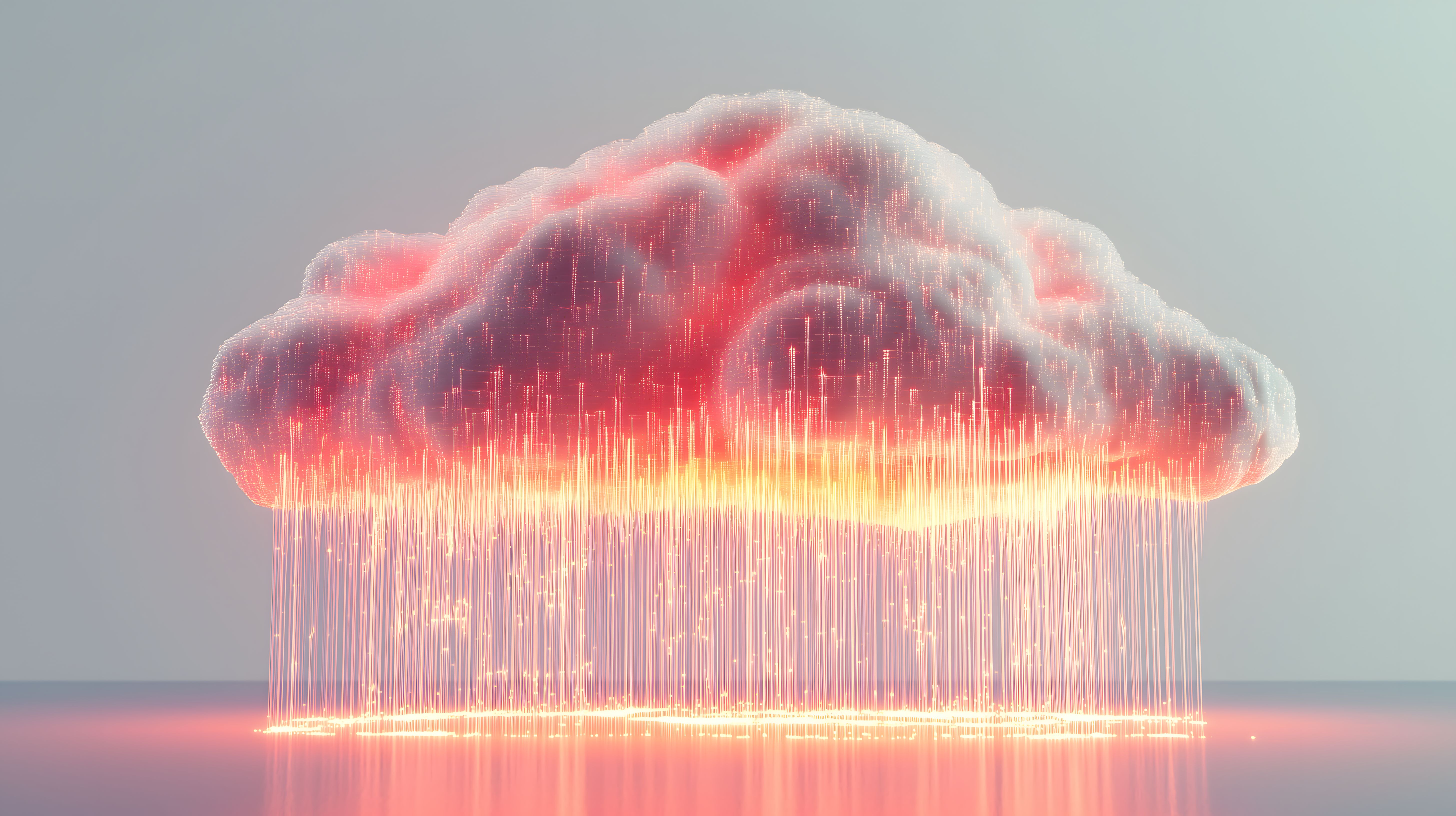 Das Bild zeigt eine schwebende, leuchtende Datenwolke mit einem dynamischen Lichtspiel. Rote und orange Farbverläufe durchziehen die Wolkenformation, die von herabfallenden, glitzernden Lichtpartikeln umgeben ist. Diese Visualisierung wirkt hochmodern, technologisch und futuristisch. Die reduzierte, grafische Ästhetik und der düstere, aber zugleich energiegeladene Hintergrund verleihen dem Bild eine kosmische und surreale Stimmung. Es eignet sich hervorragend für digitale Anwendungen wie Websites, Social Media-Posts oder Webgrafiken in den Bereichen Technologie, Wissenschaft oder digitale Kunst. Dieses hochauflösende, kostenlose Stockfoto steht unter einer Creative Commons-Lizenz zur Verfügung.