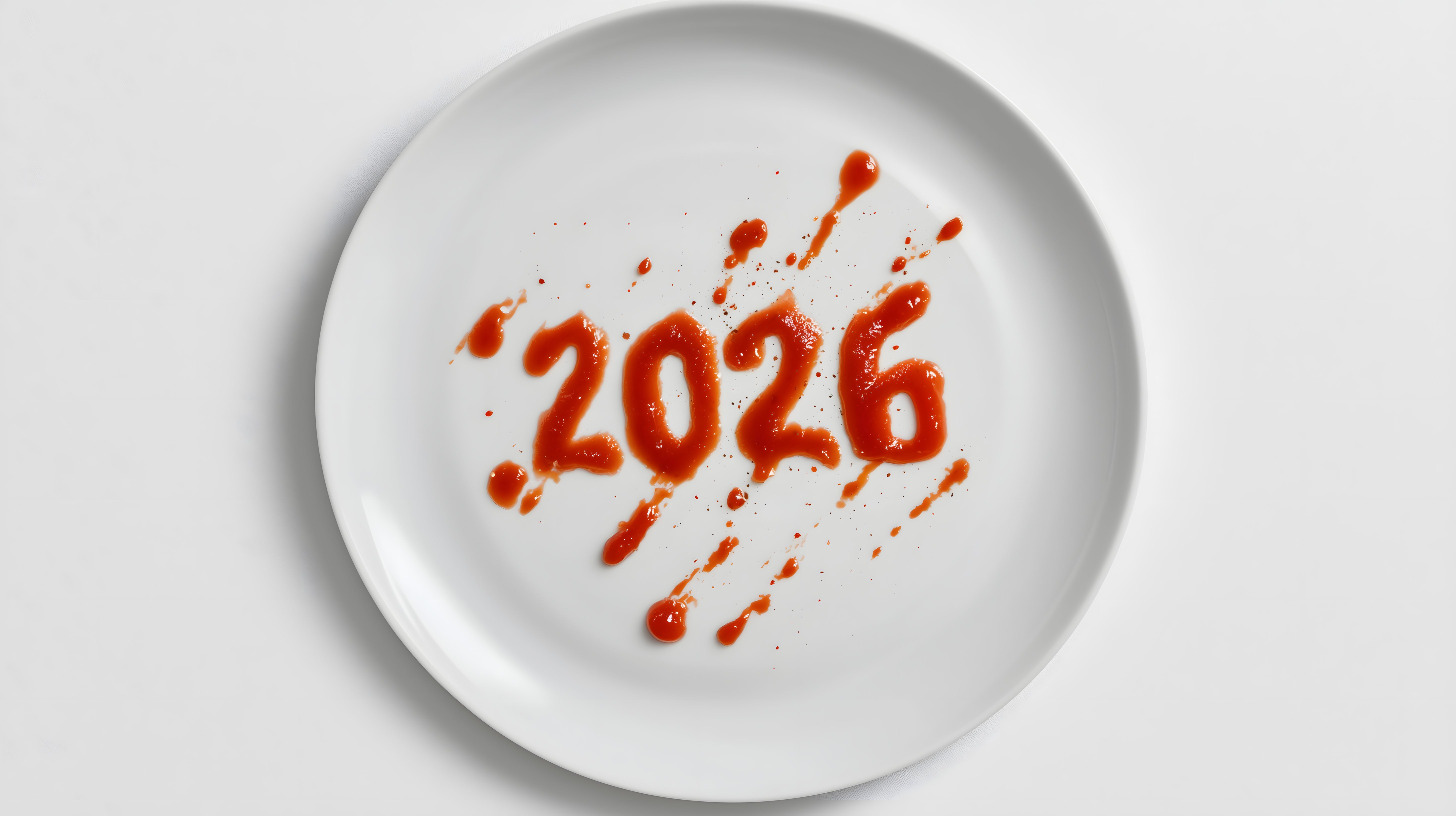 Dieses Stockfoto zeigt eine Darstellung der Jahreszahl 2026 aus Ketchup auf einem weißen Teller vor einem hellen Hintergrund. Das Motiv hat eine minimalistische und kreative Ästhetik, die sich gut für Anwendungen in Blogs, Newslettern, Social-Media-Beiträgen oder Werbematerialien eignet. Dieses hochauflösende Bild in hoher Qualität ist kostenfrei unter einer Creative-Commons-Lizenz verfügbar.